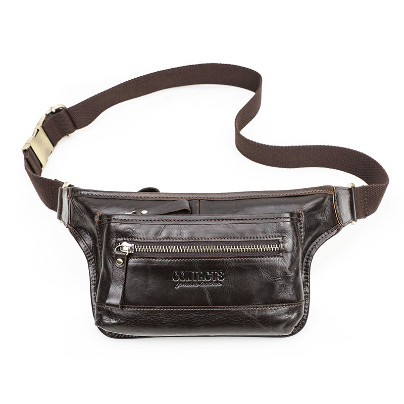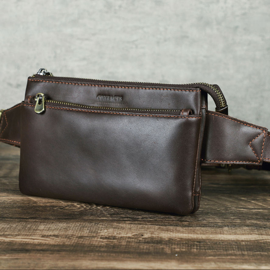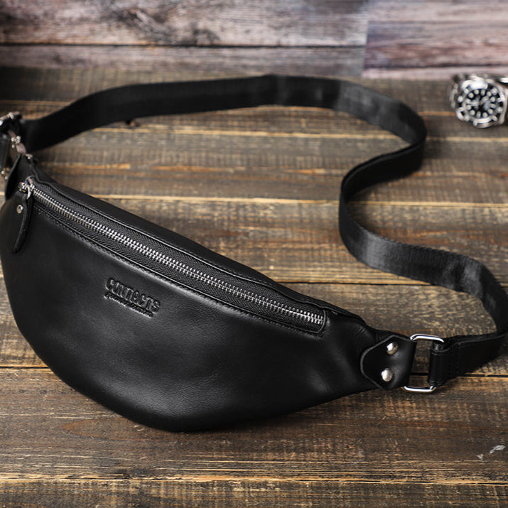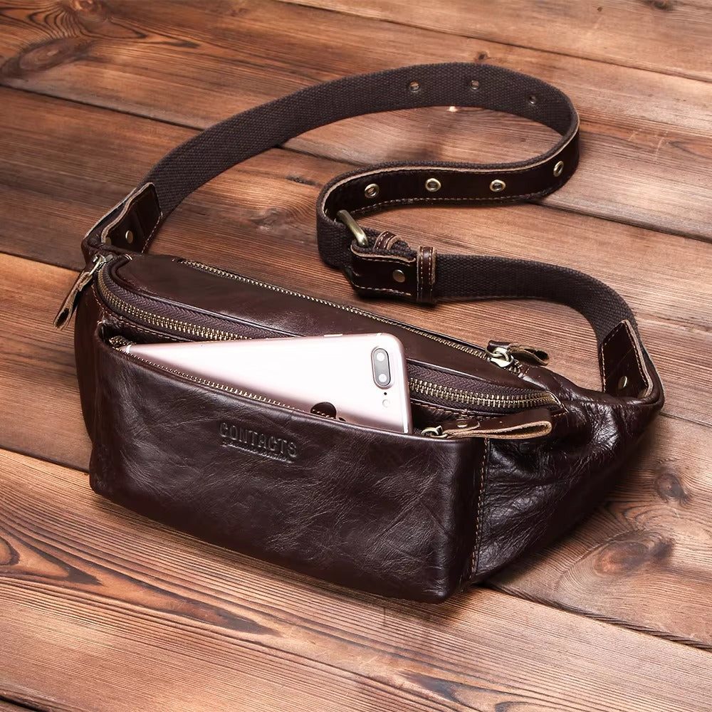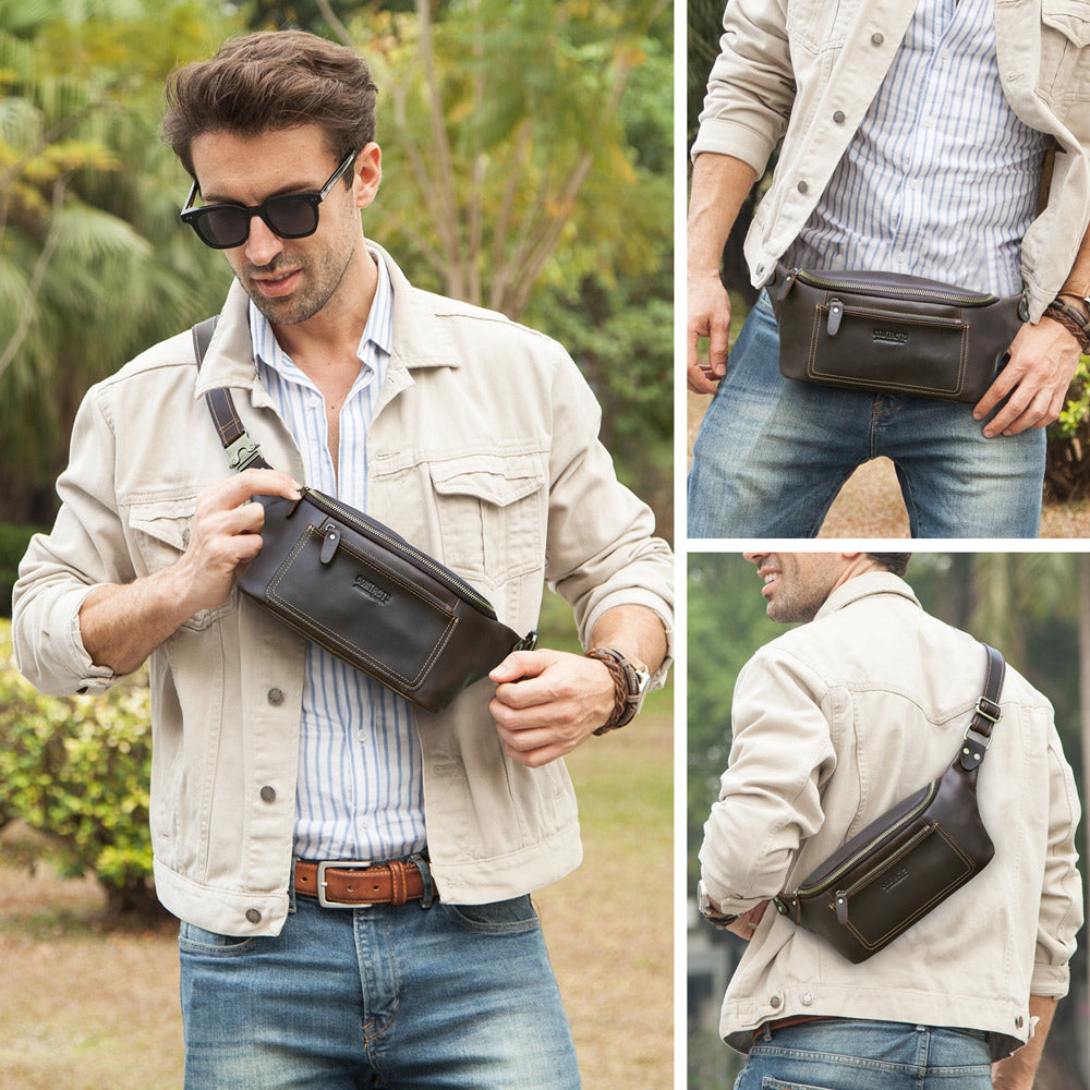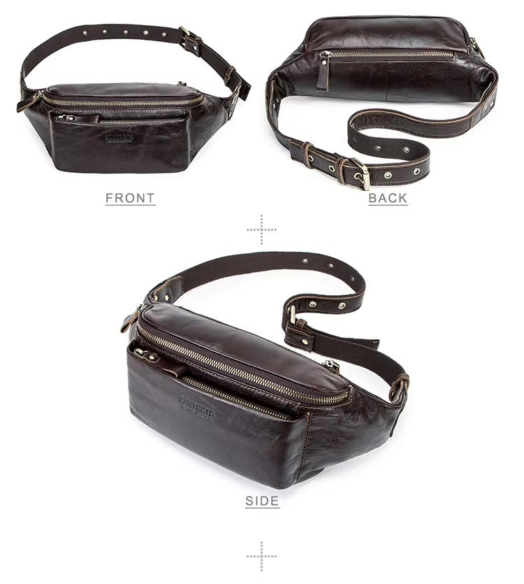 Men's Genuine Leather Fanny Pack - Durable Zippered Waist Bag