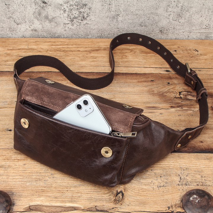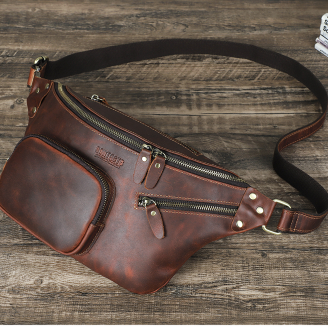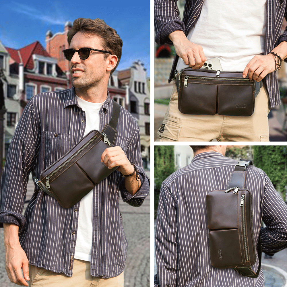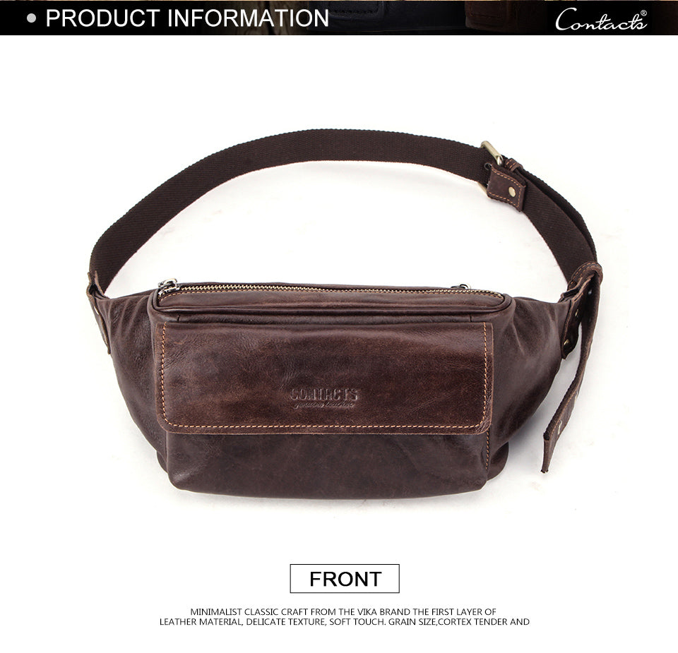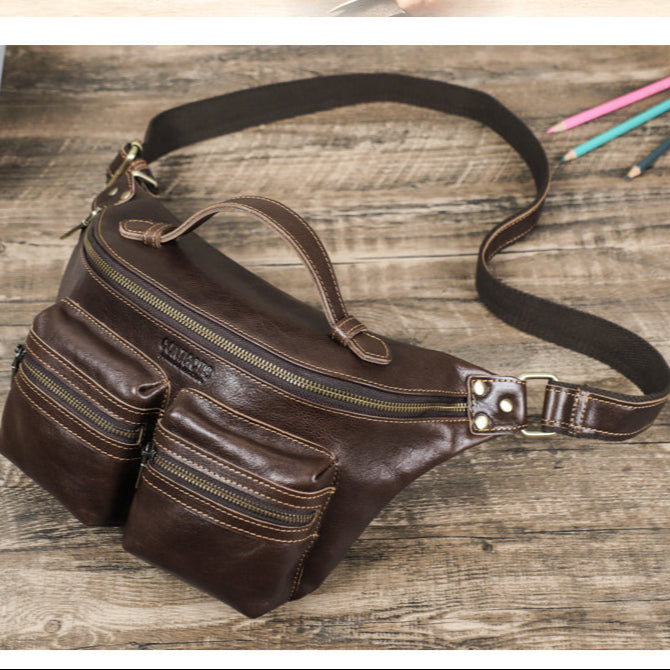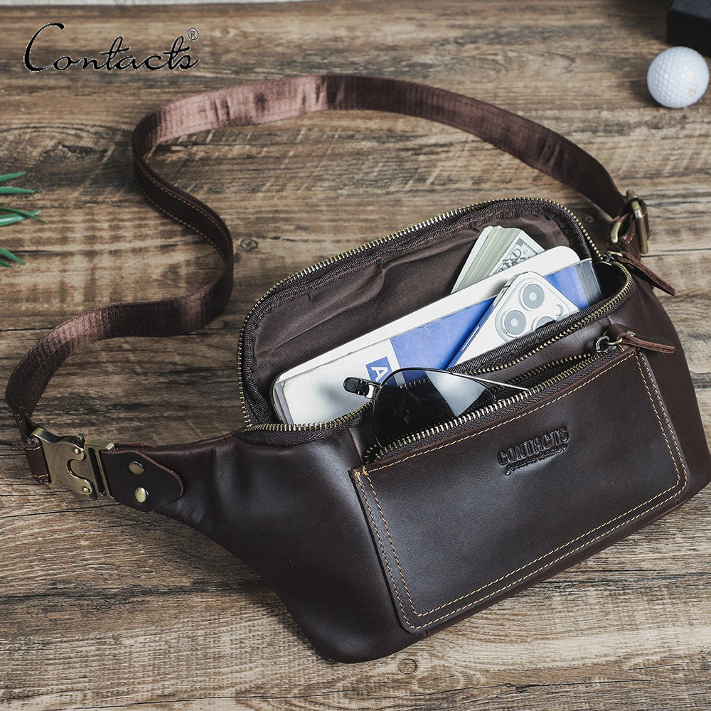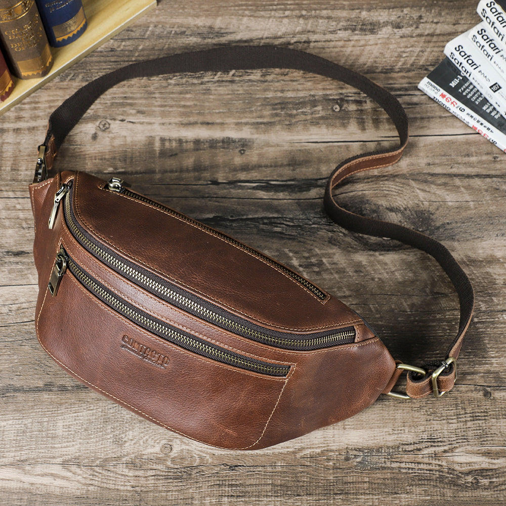 Men's Genuine Leather Fanny Pack - Durable Zippered Waist Bag