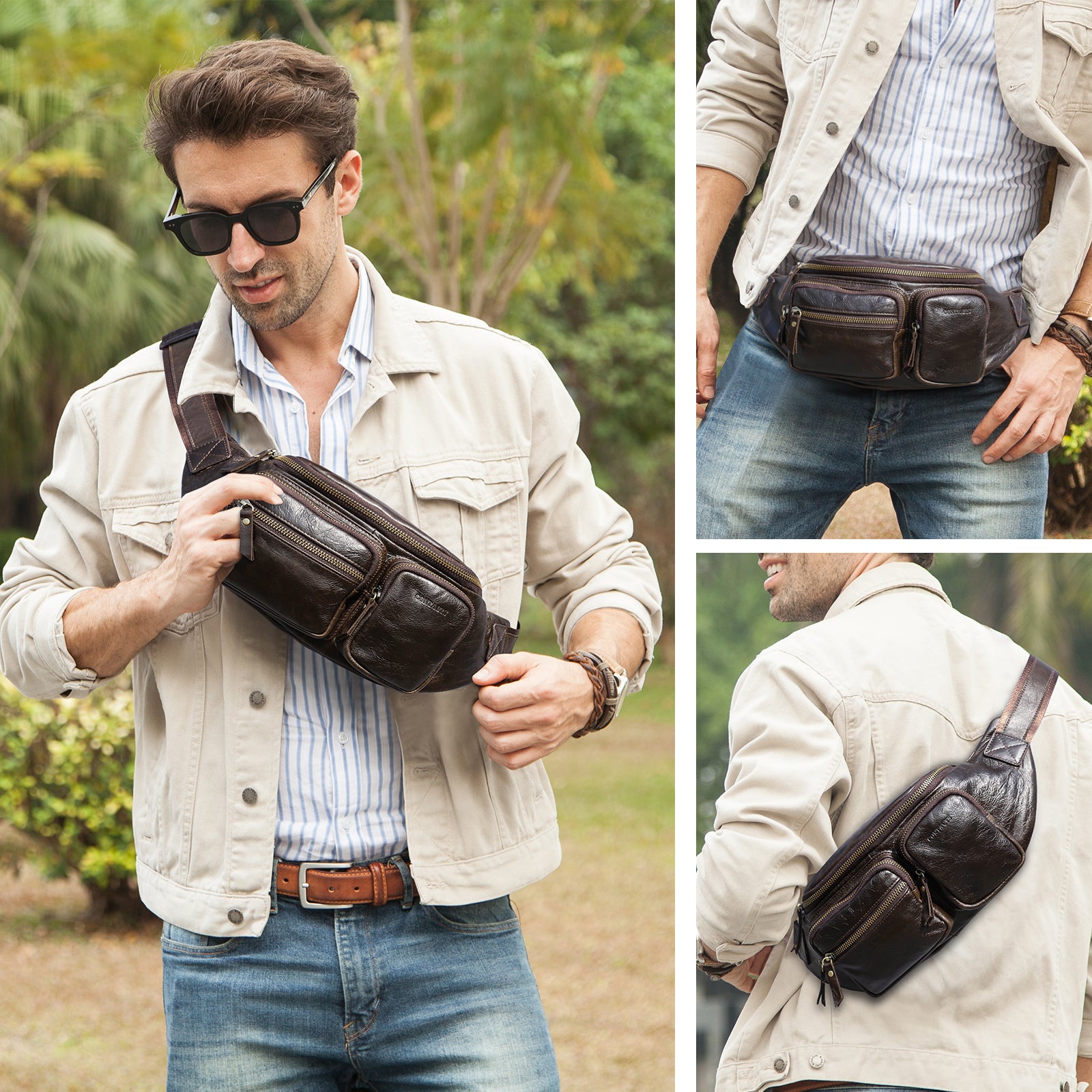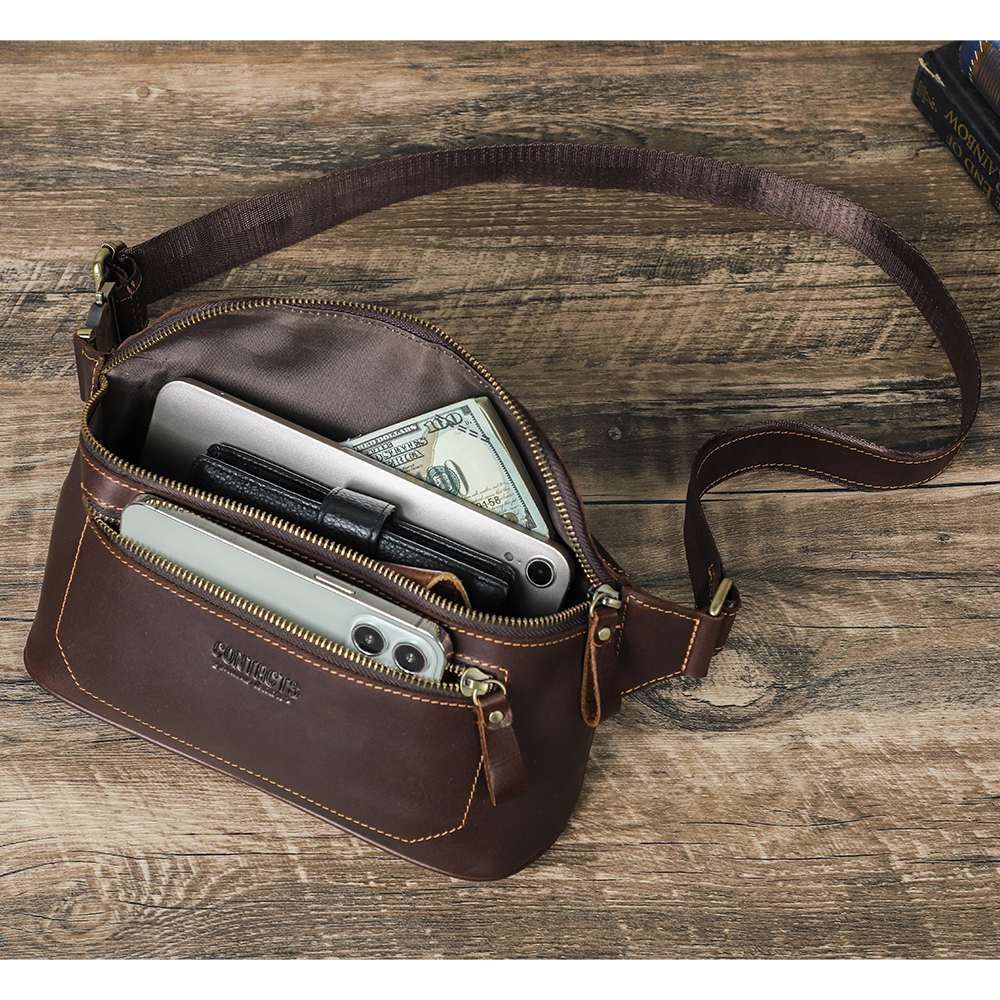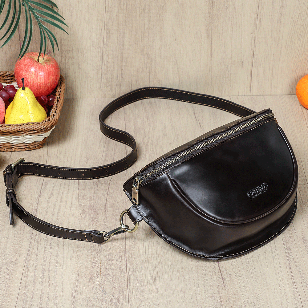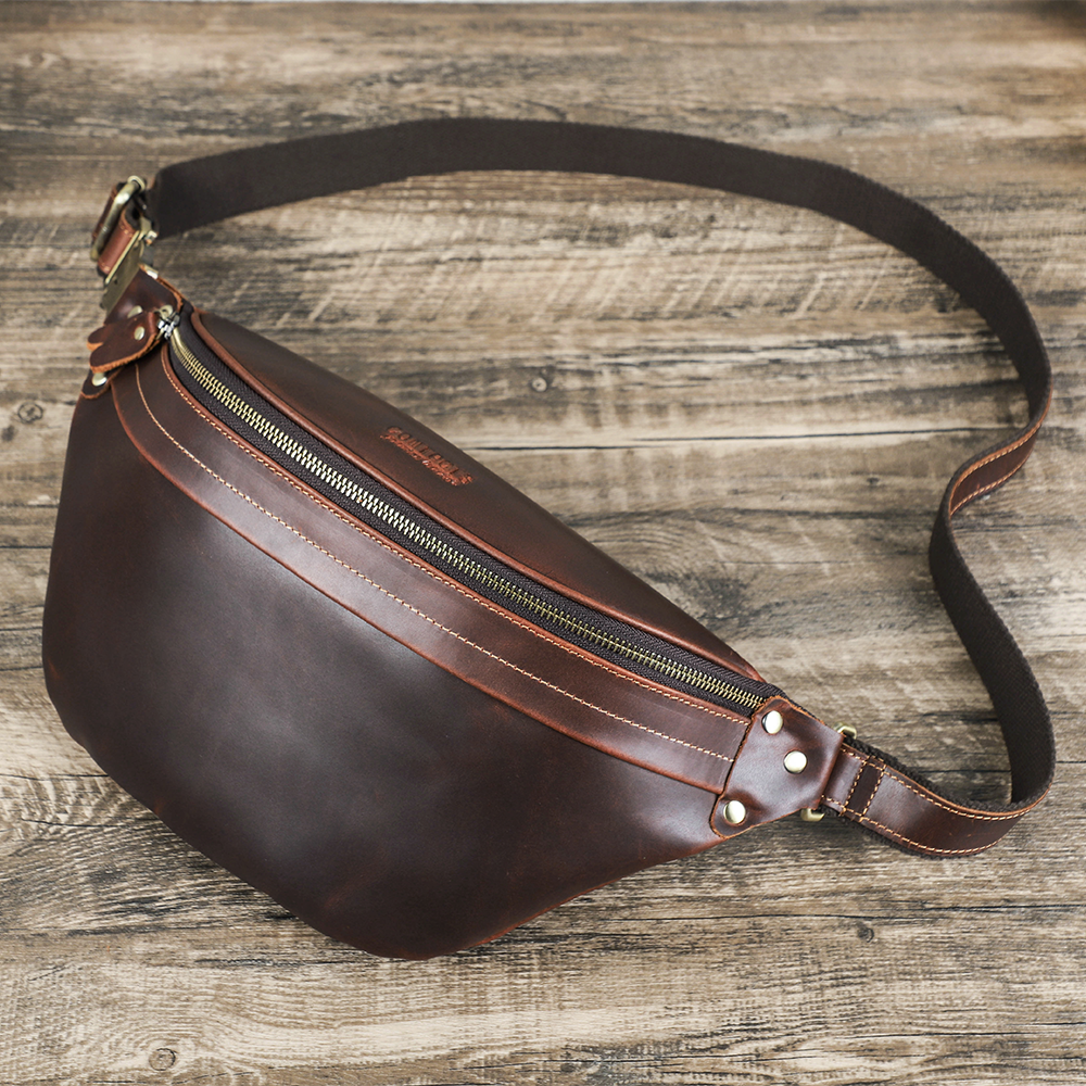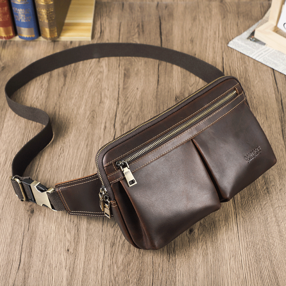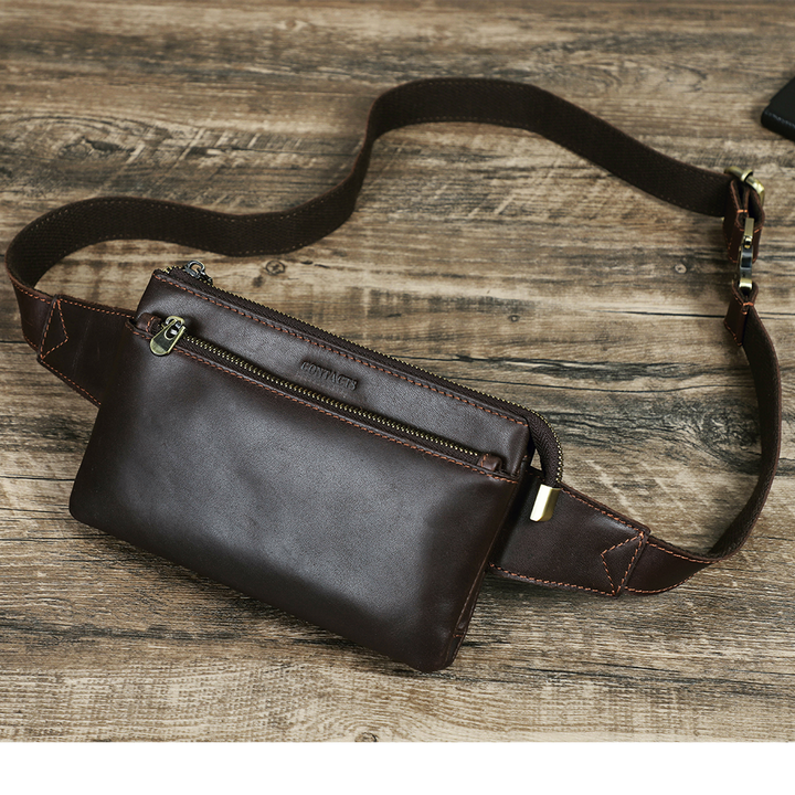 Men's Genuine Leather Fanny Pack - Durable Zippered Waist Bag - color variant: Coffee