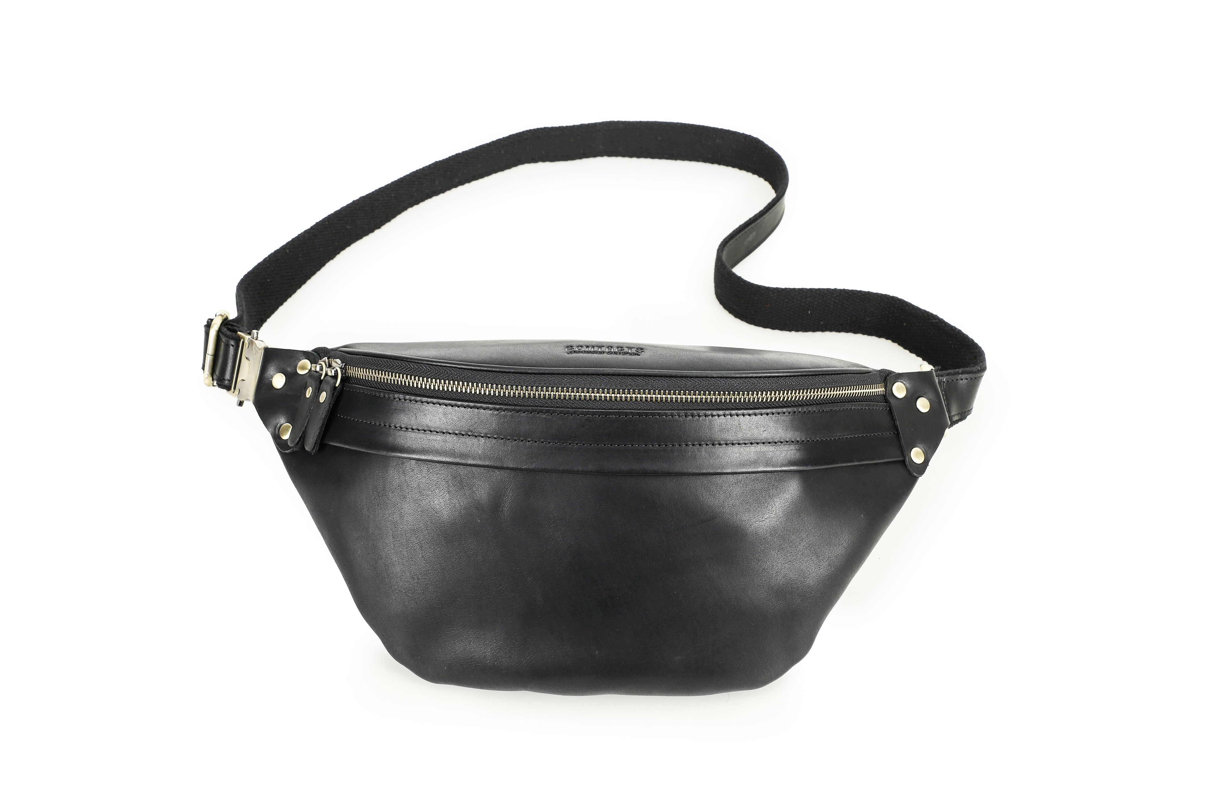 Premium Leather Waist Bag - Crossbody Shoulder Fanny Pack - color variant: Black