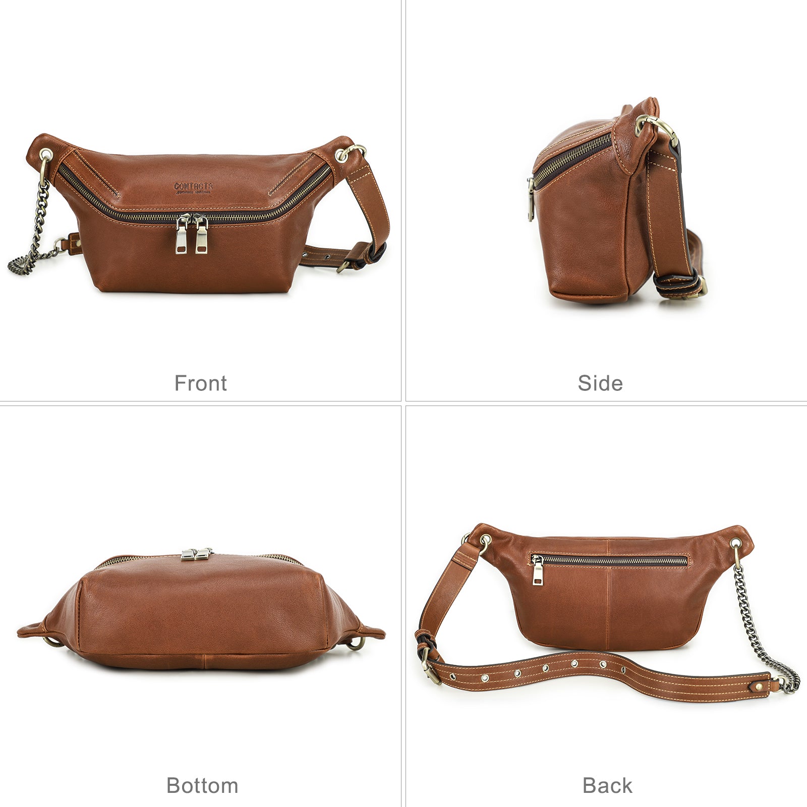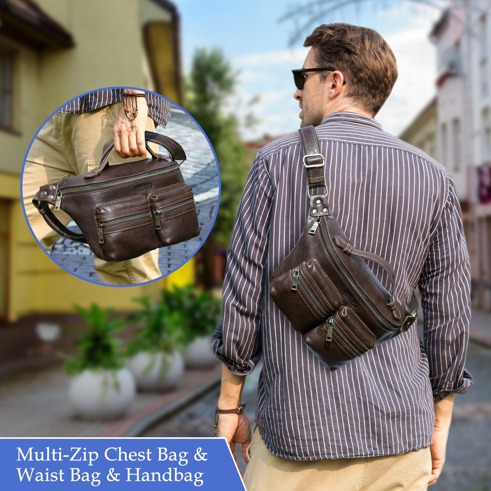 Men's Genuine Leather Fanny Pack - Durable Zippered Waist Bag - color variant: Brown