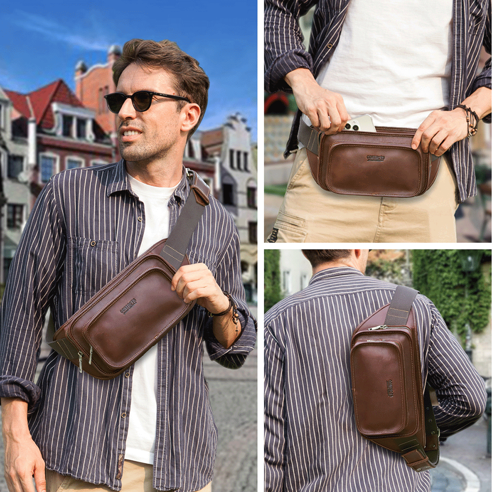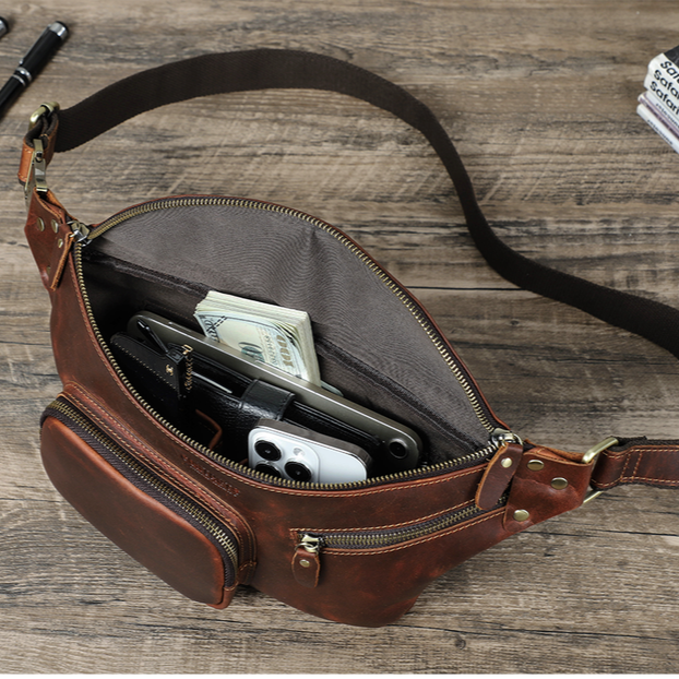 Premium Leather Waist Bag - Crossbody Shoulder Fanny Pack