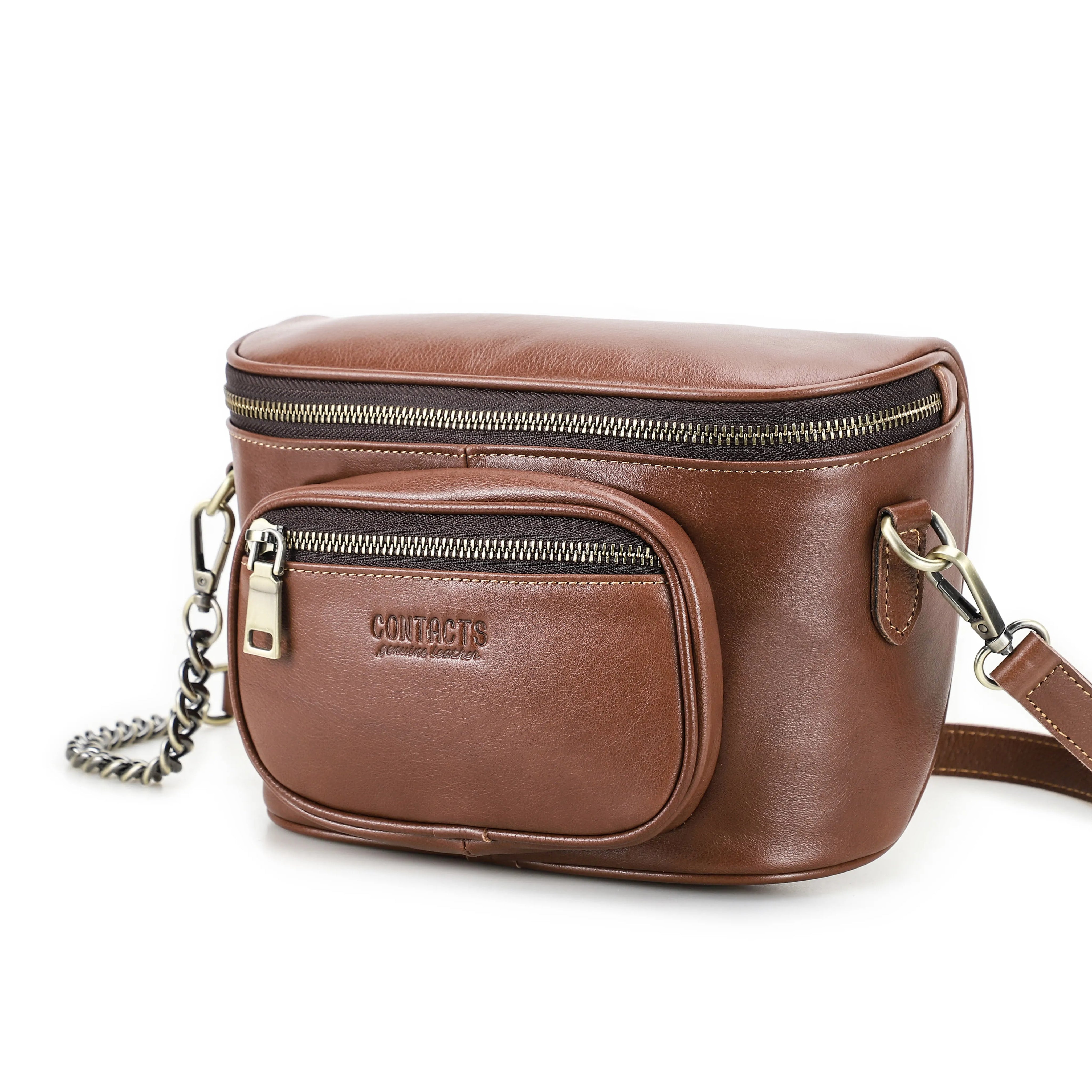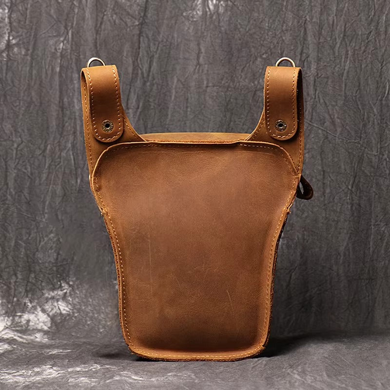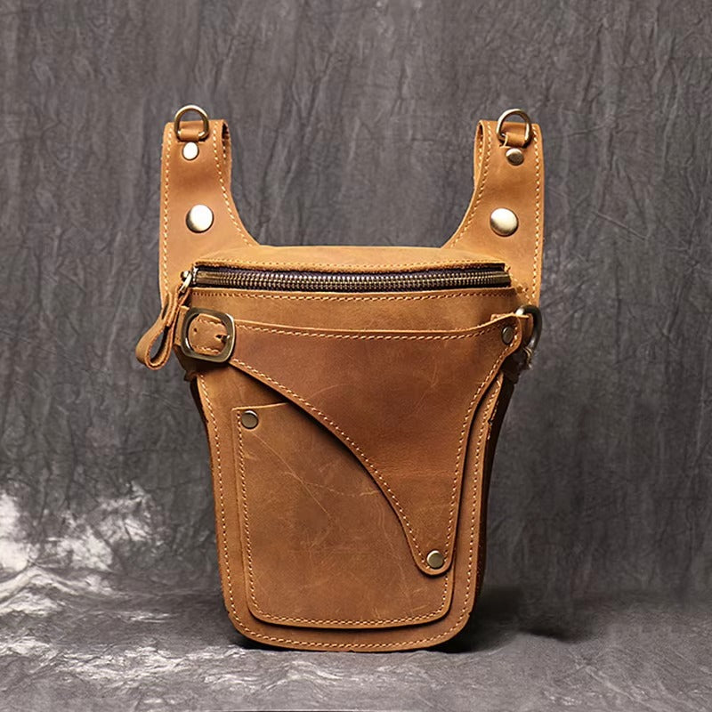 Handmade Crazy Horse Leather Zipper Chest Bag for Men, Vintage Leather Crossbody Bag for Men - color variant: Light Brown