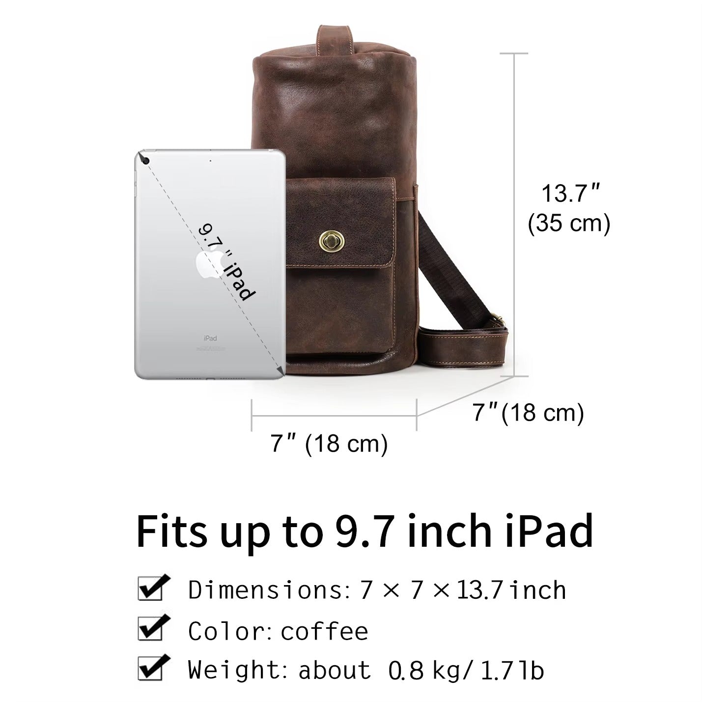 Handmade Crazy Horse Leather Zipper Chest Bag for Men, Vintage Leather Crossbody Bag for Men - color variant: Coffee