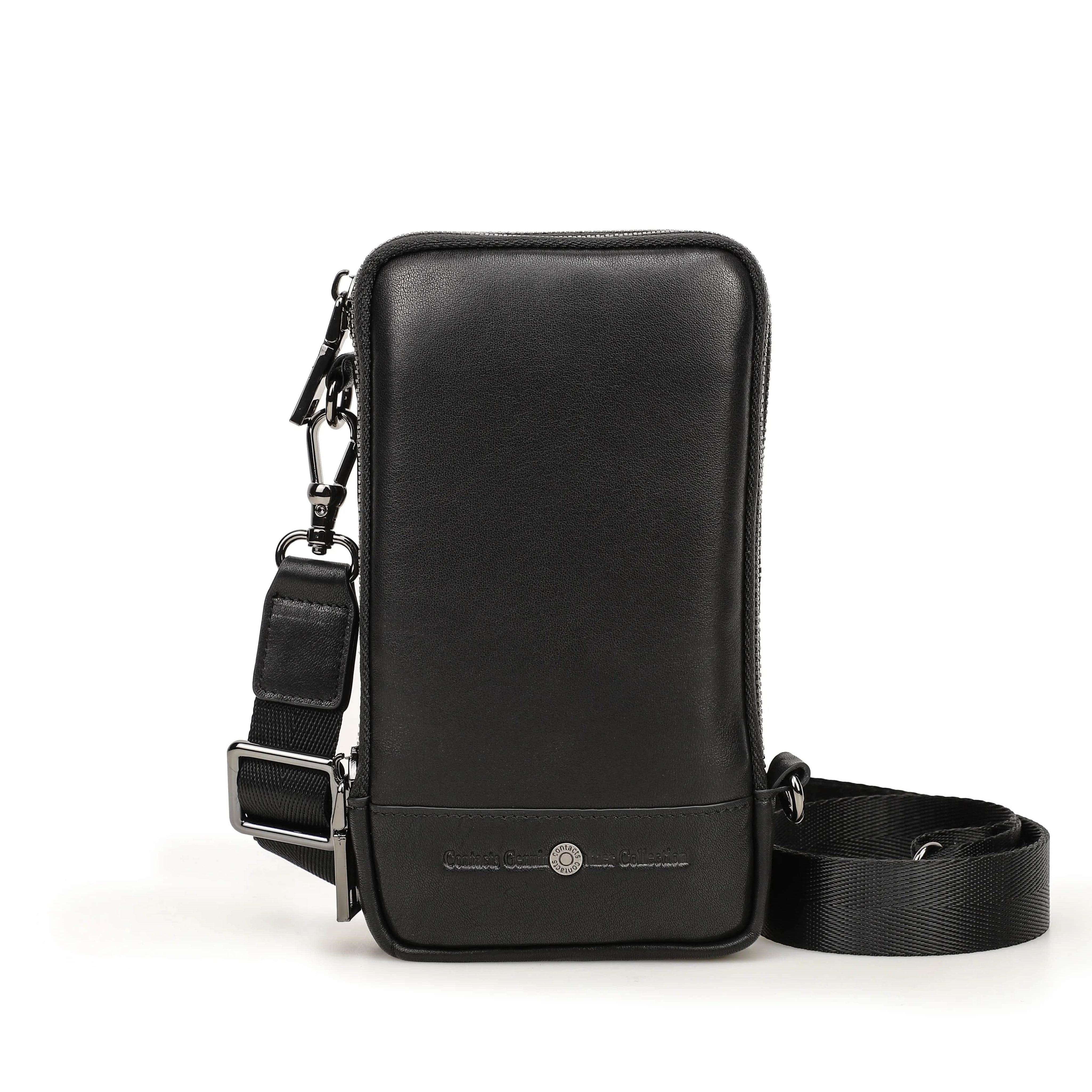 Handmade Crazy Horse Leather Zipper Chest Bag for Men, Vintage Leather Crossbody Bag for Men - color variant: Black