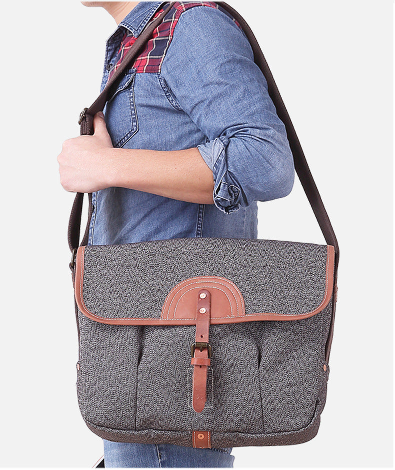 Classic Tweed Canvas Messenger Bag with Stylish and Spacious Design