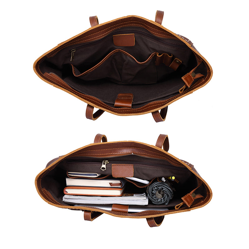 Genuine Brown Leather Tote Bag - Stylish & Spacious for Everyday Use
