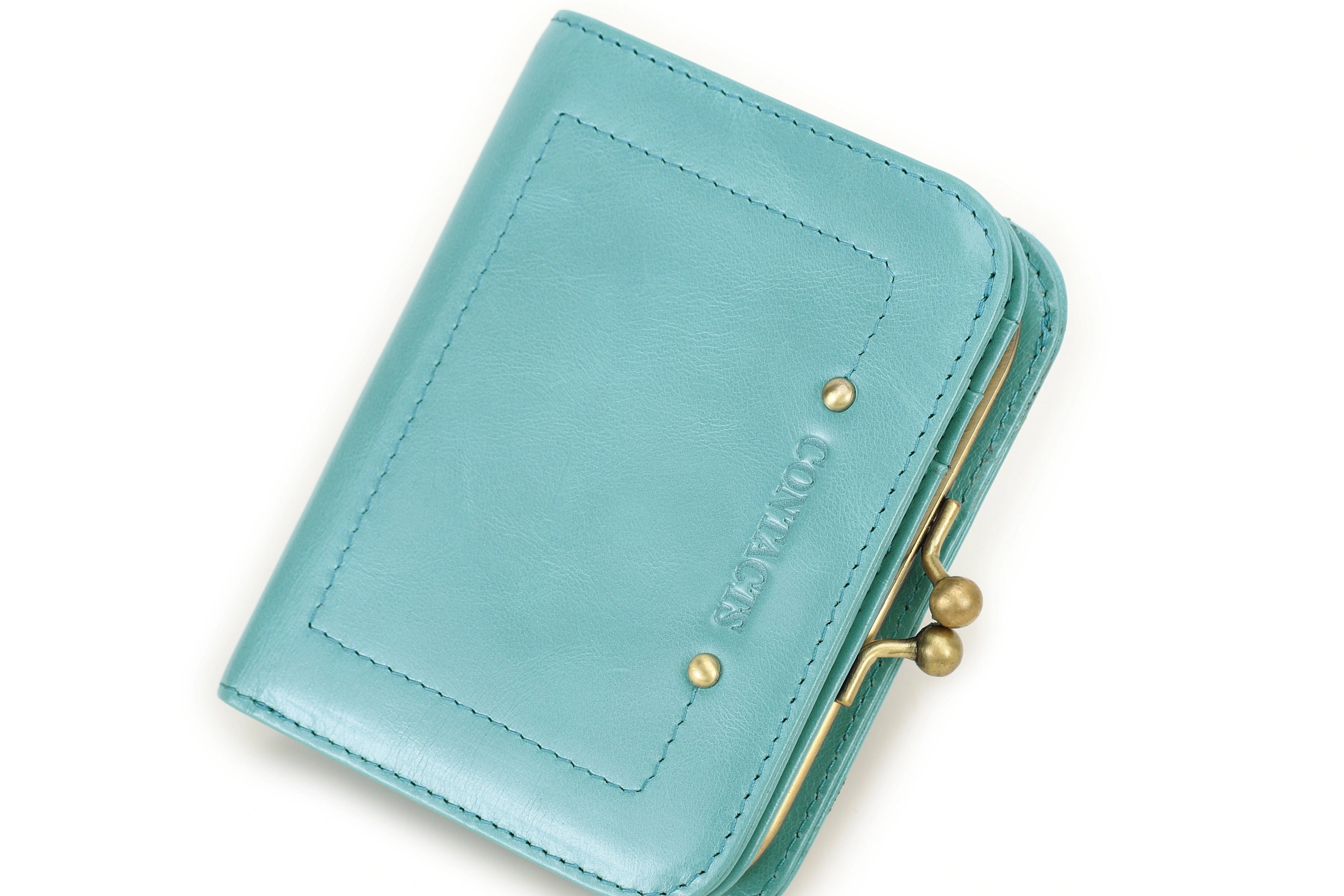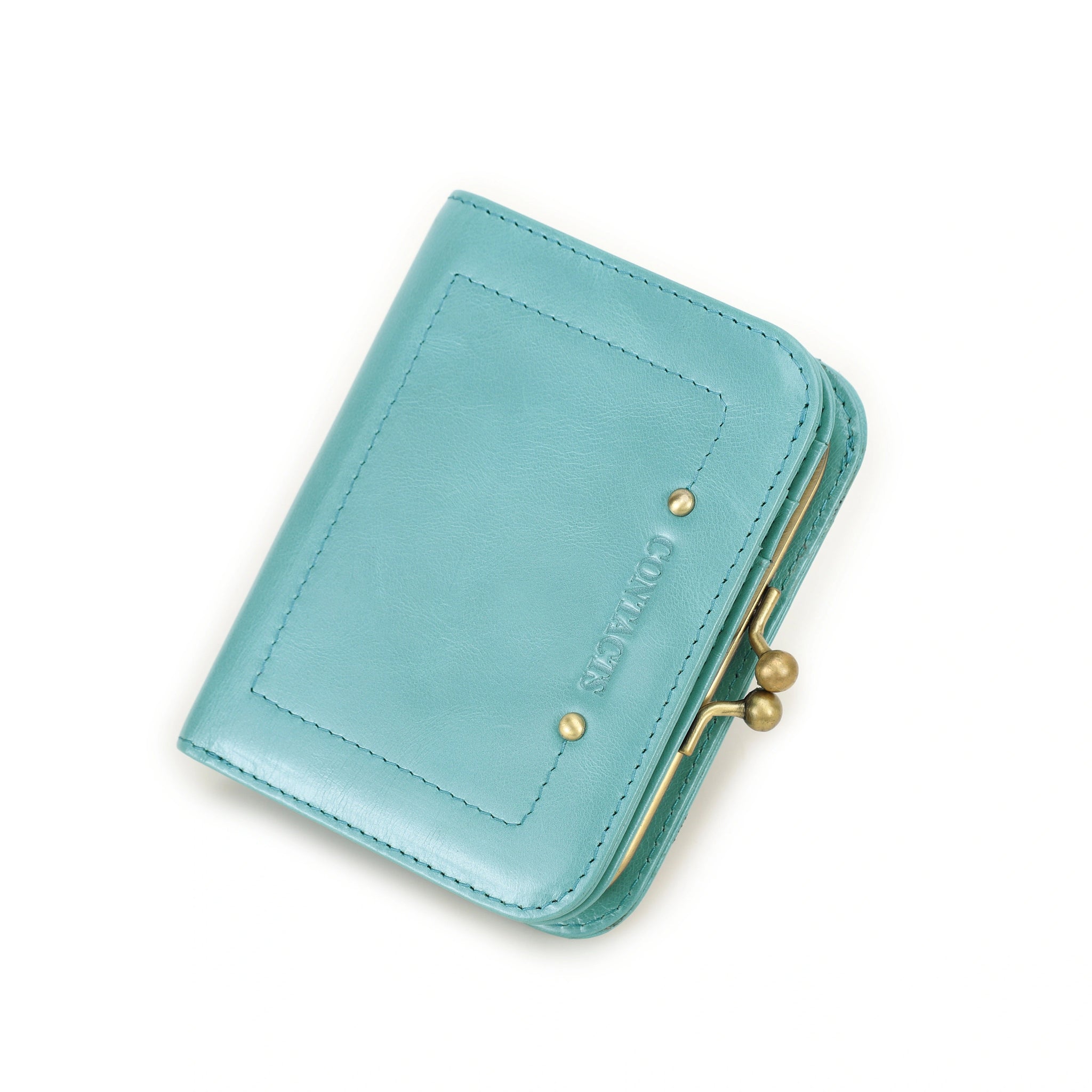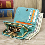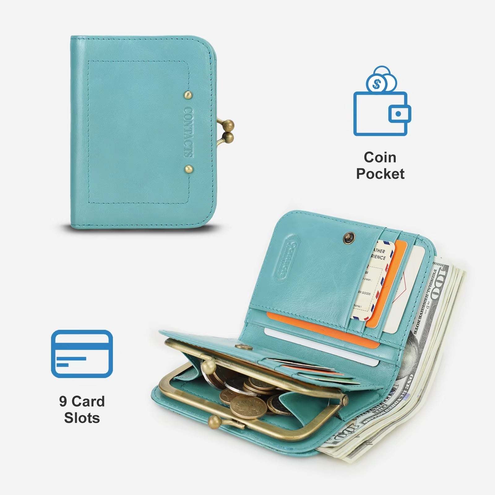 Women Leather Bifold Clutch Wallet with Metal Frame