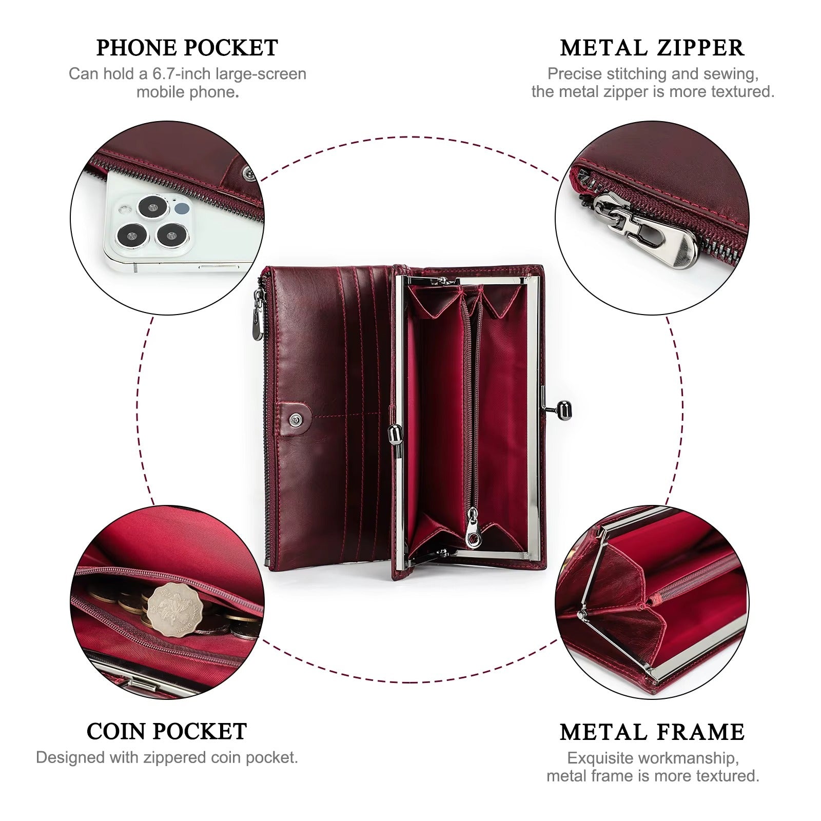 Women's RFID Blocking Leather Clutch Wallet For Everyday Use