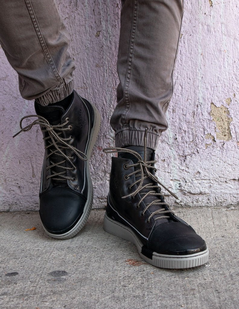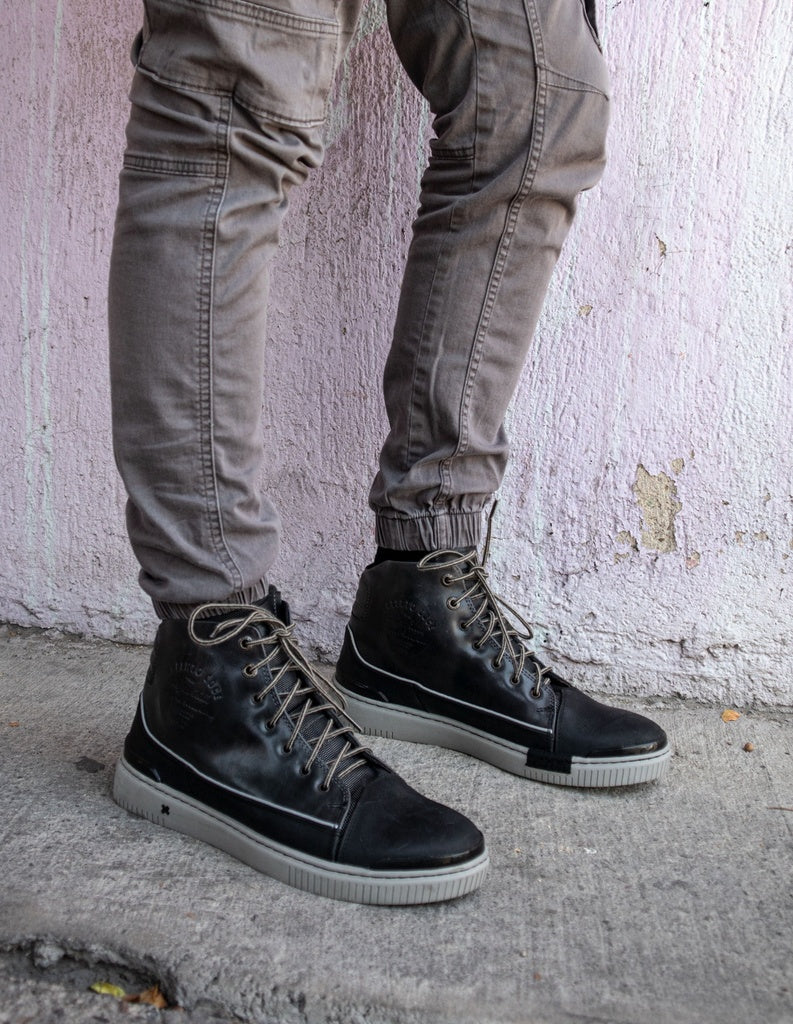 Handcrafted Leather High-top Biker Sneakers for Men