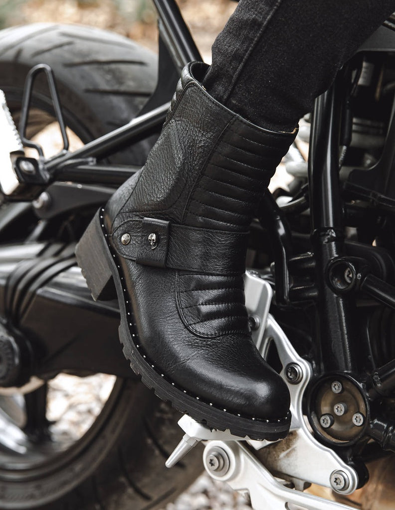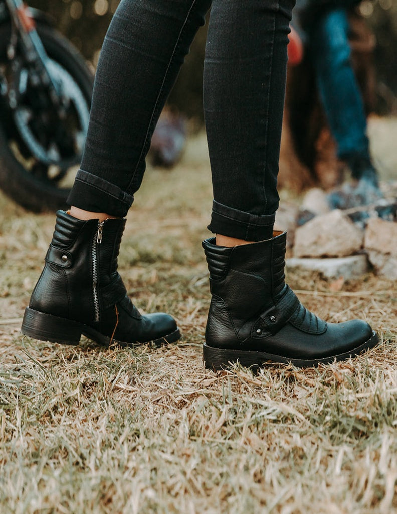 Handcrafted Women's Leather Motorcycle Boots with Protective Features