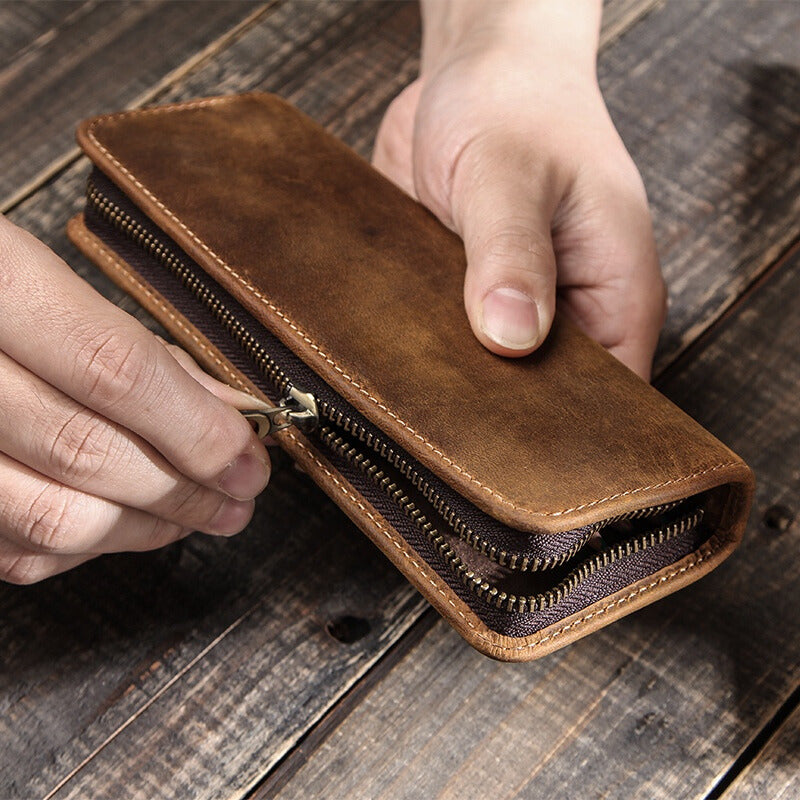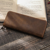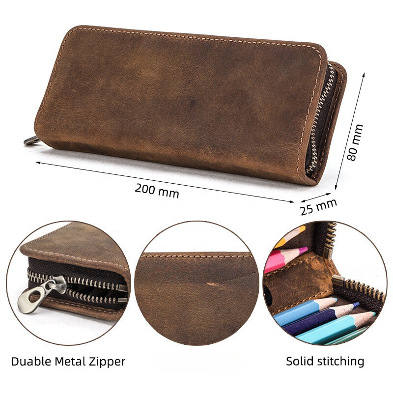 Handmade Leather Pencil Bag - Genuine Zipper Pencil Pouch
