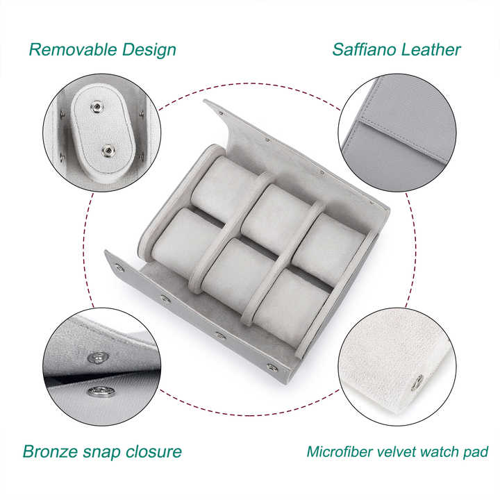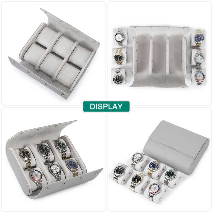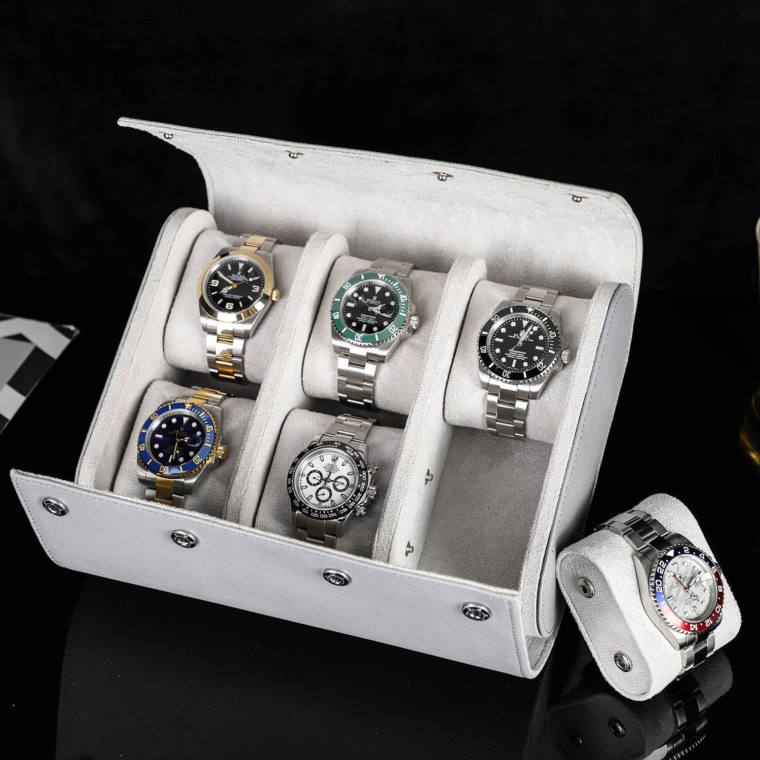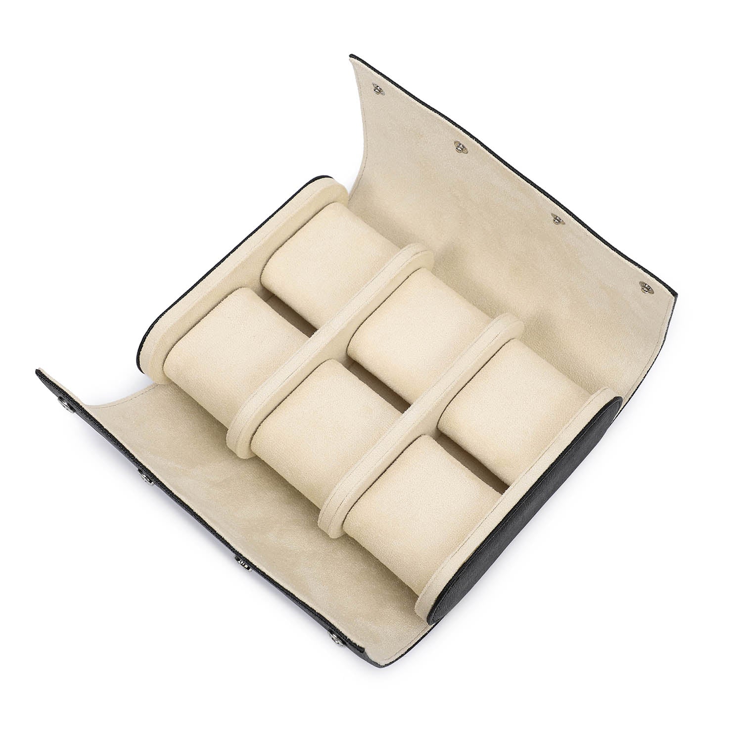 Unisex Leather Travel Watch Roll Case with 6 Slots
