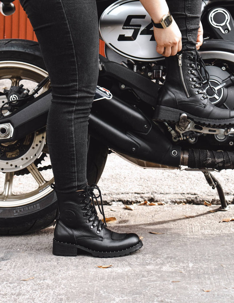Women's High Ankle Genuine Leather Heavy Duty Biker Boots