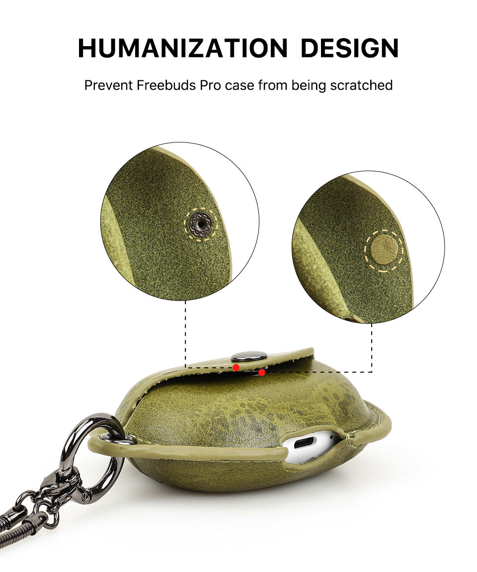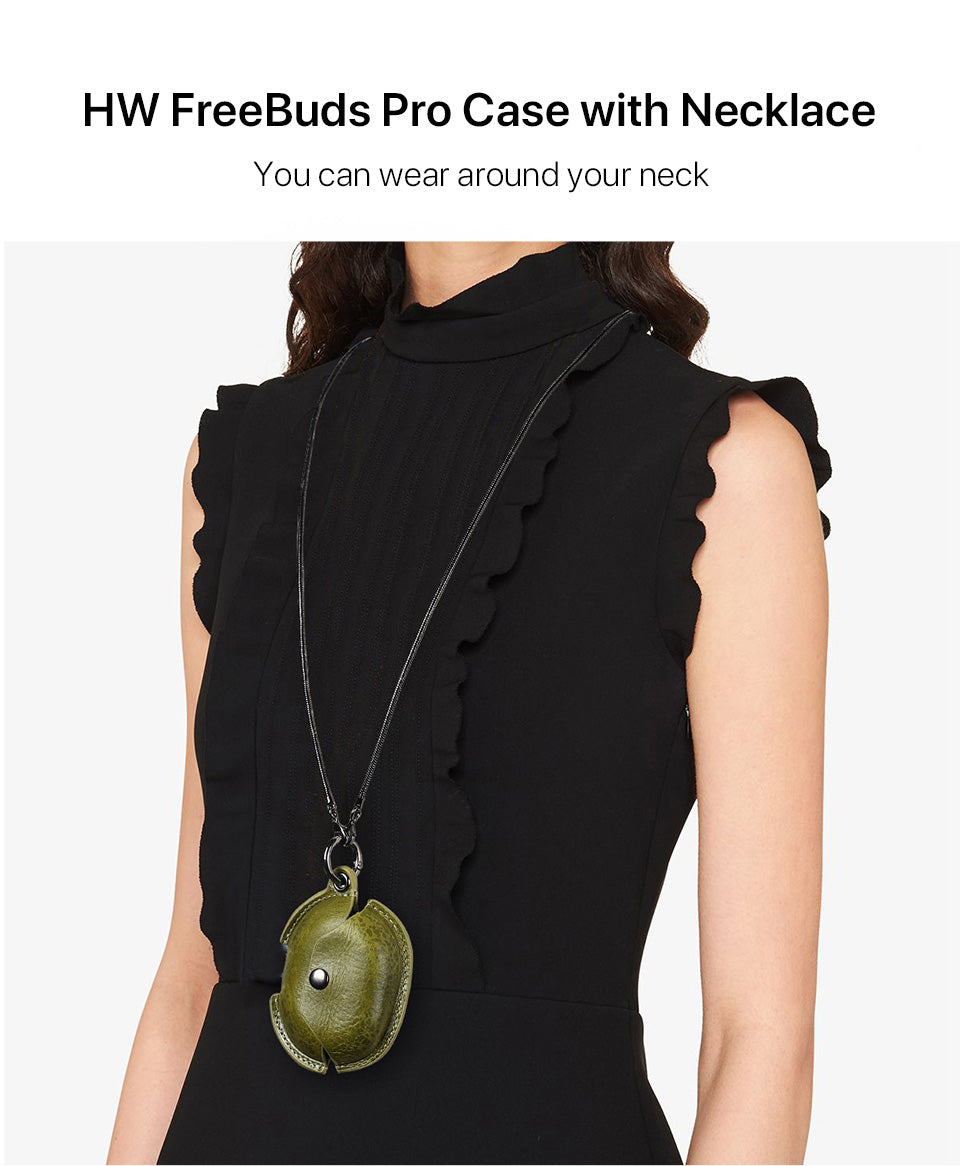 Genuine Leather Huawei Pro Earphone Case with A Necklace Hook