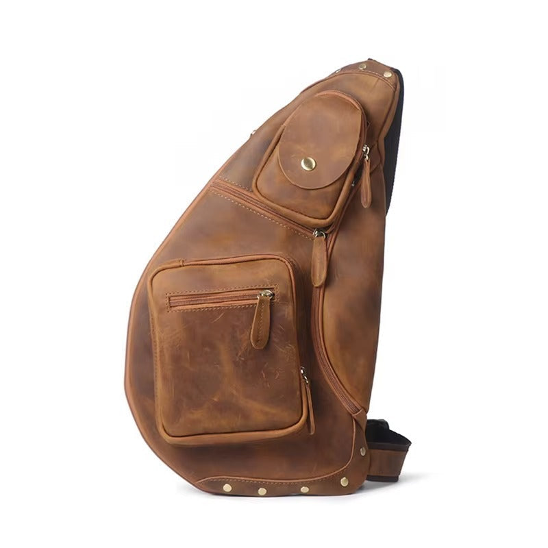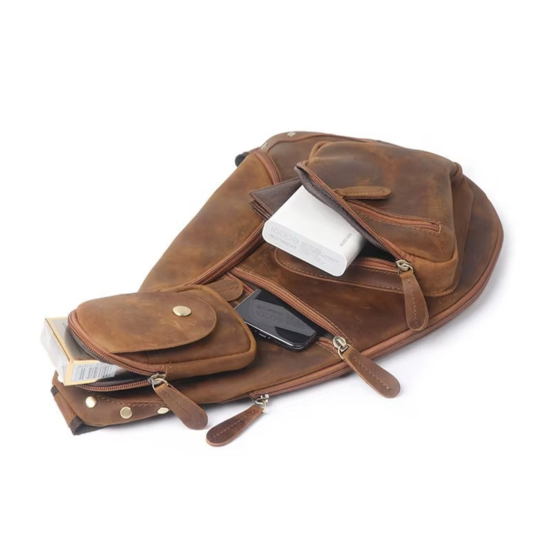 Handcrafted Genuine Leather Crossbody Chest Bag for Men