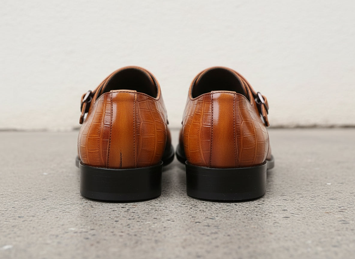 Men's Handmade Double Monk Alligator Leather Dress Shoes