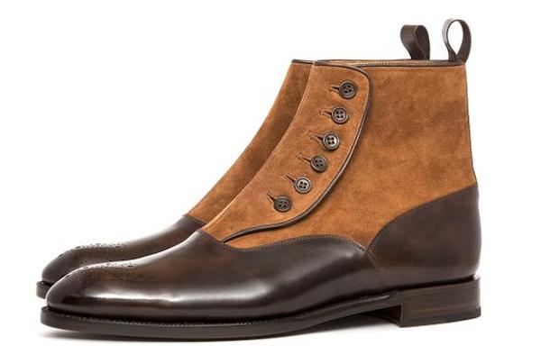 Handcrafted Men's Tan Suede and Brown Leather Button Boots
