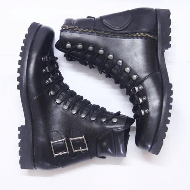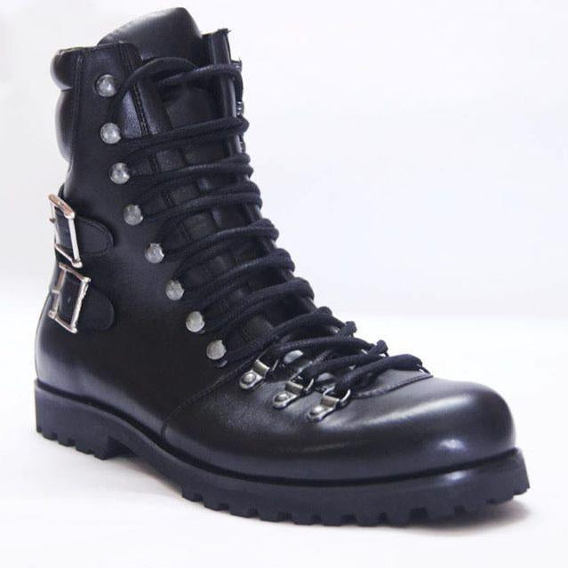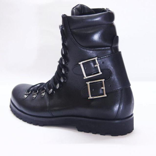 Handmade Men's Black Biker Leather Ankle Boots