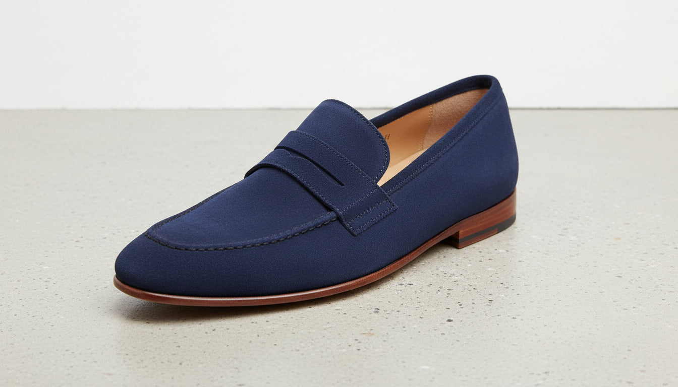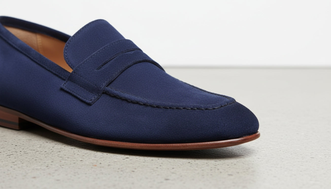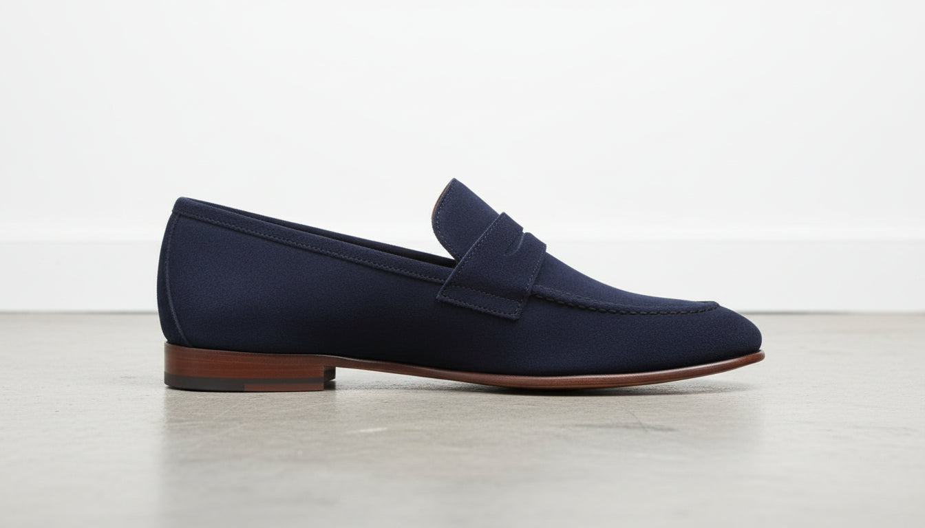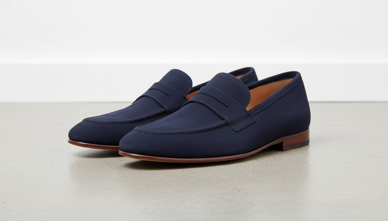 Handcrafted Blue Suede Leather Loafers for Men