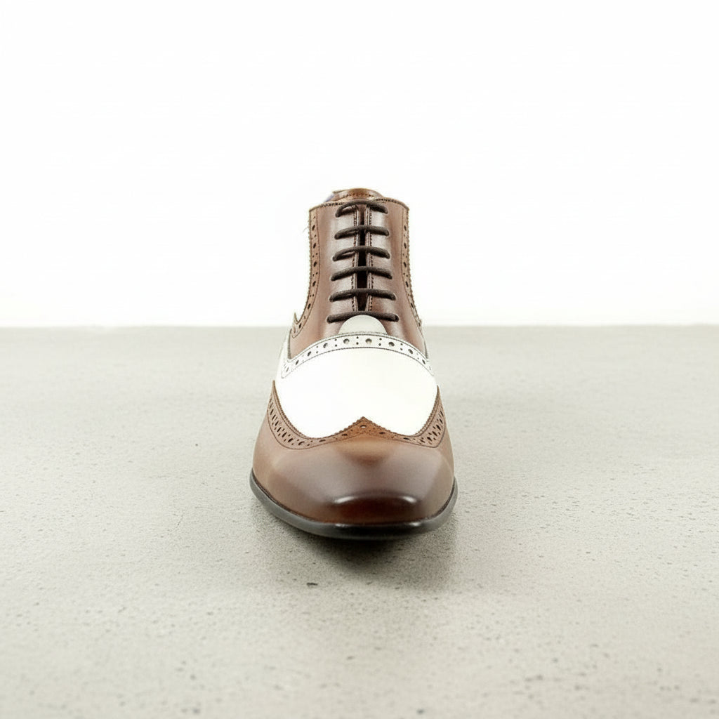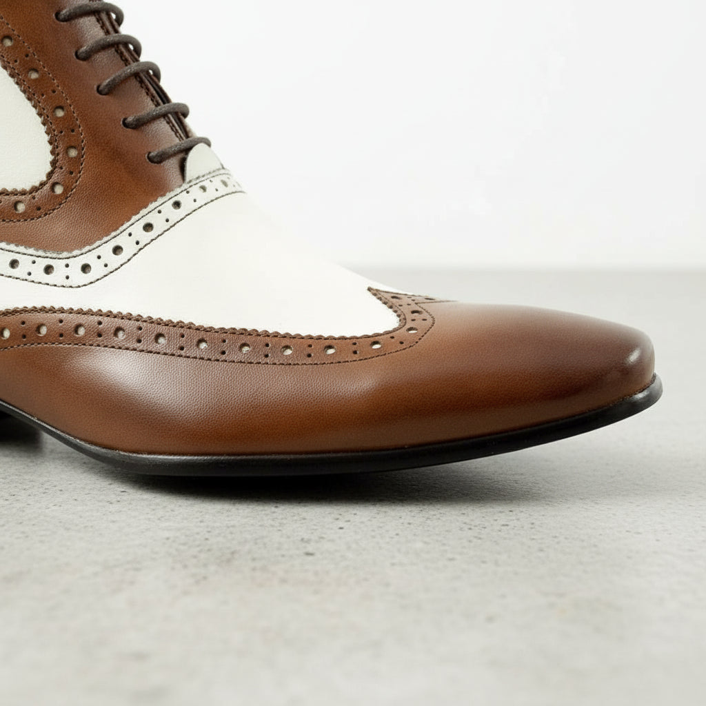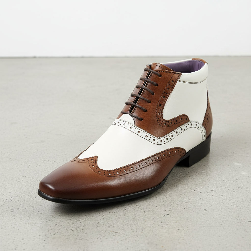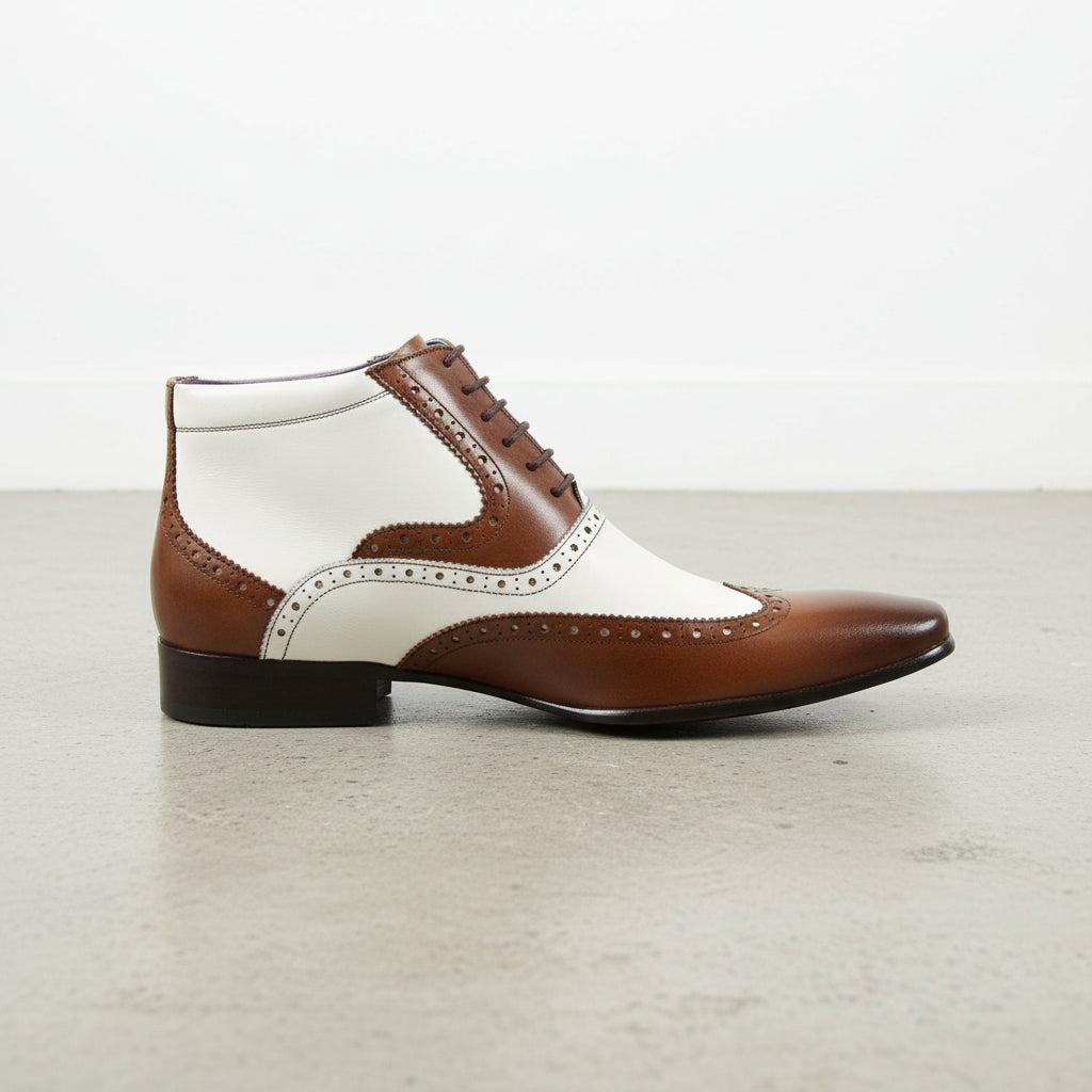 Handcrafted Men's Brown and White Wingtip Ankle Boots