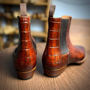 Handcrafted Men's Brown Chelsea Boots with Crocodile Pattern