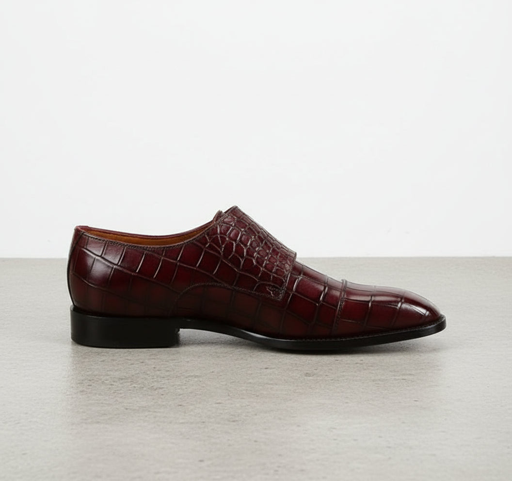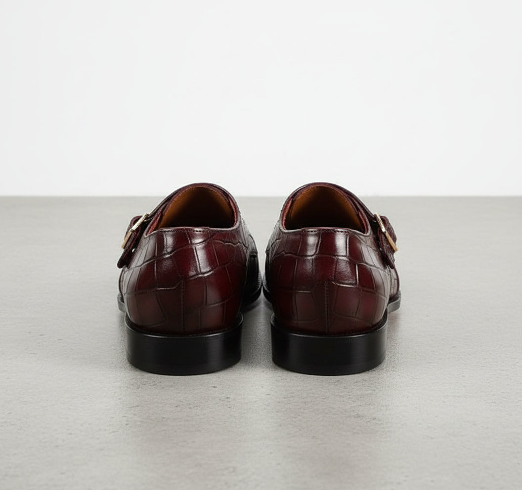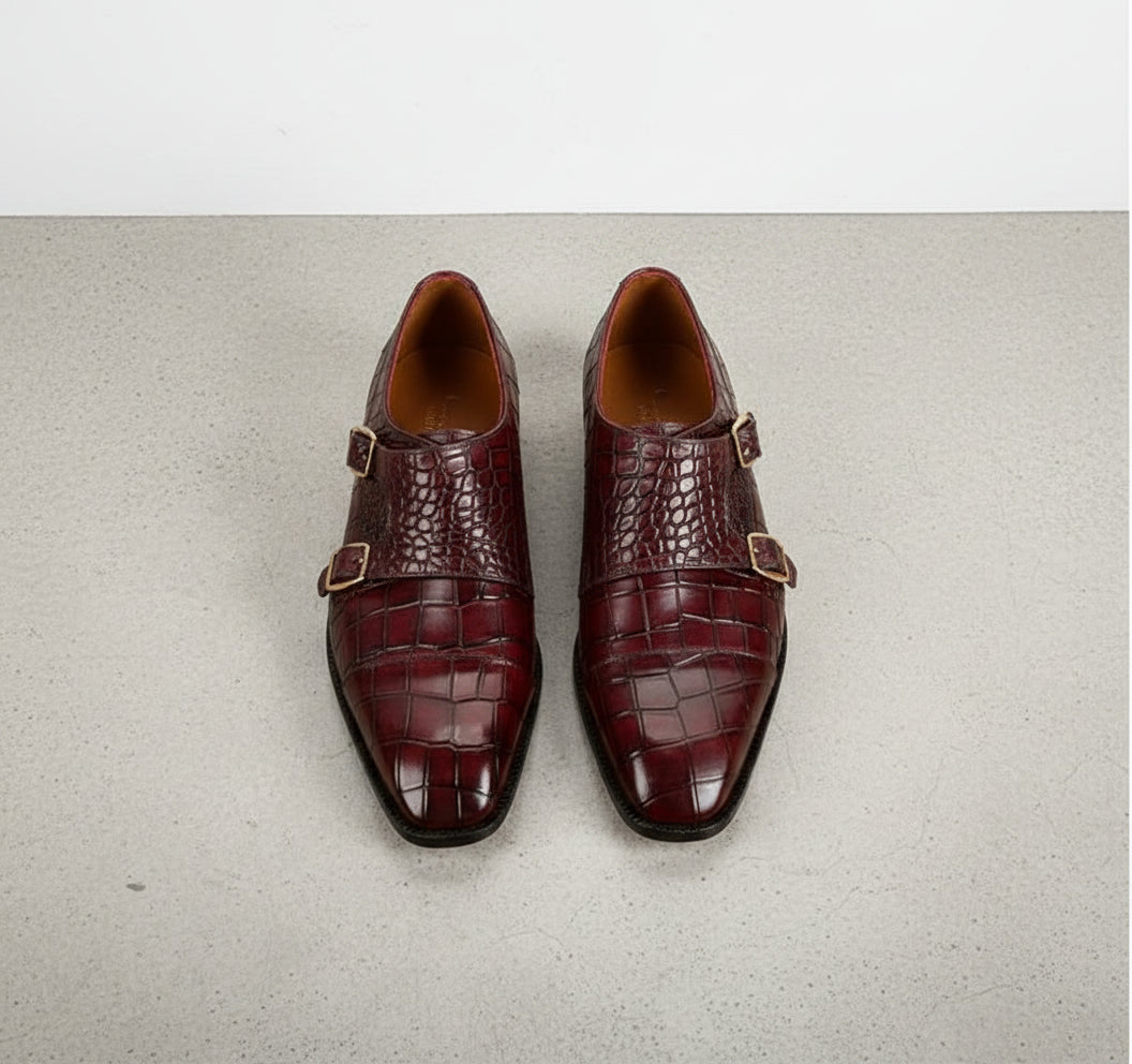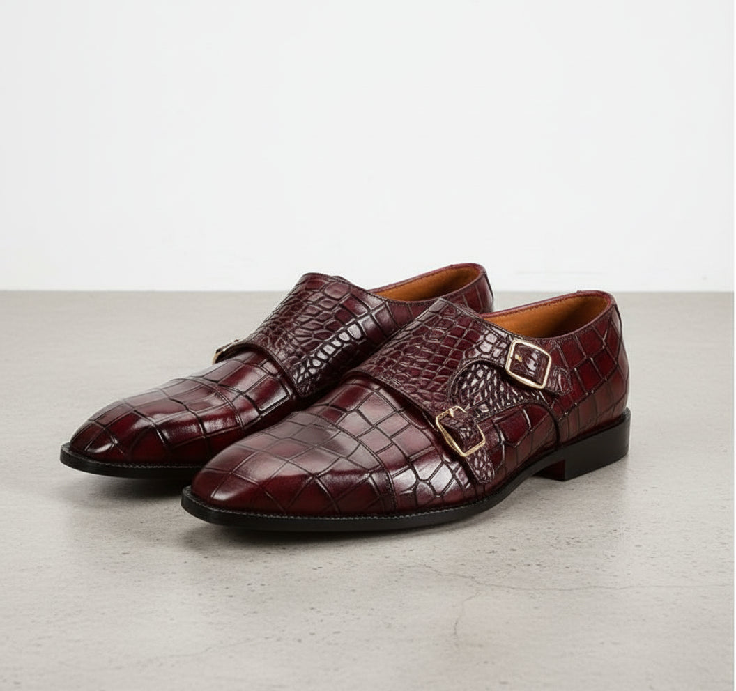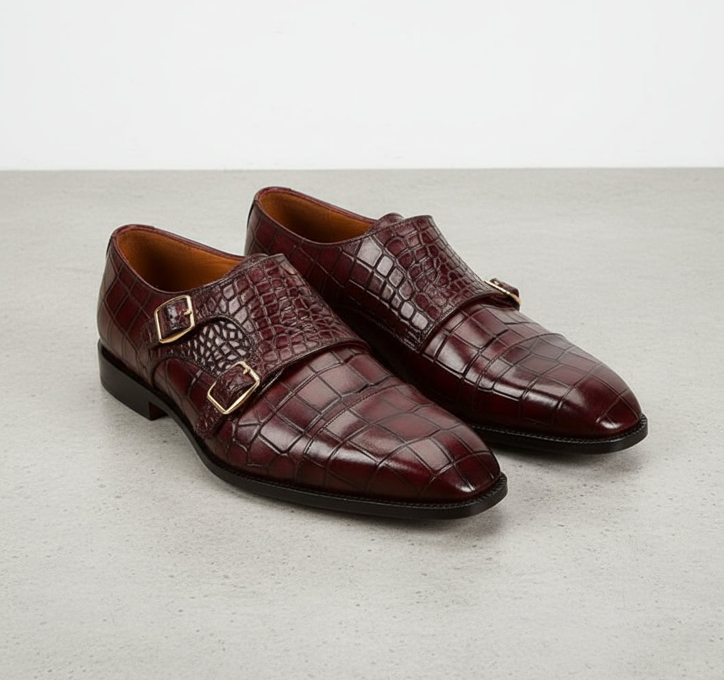 Handcrafted Brown Crocodile Leather Double Monk Shoes
