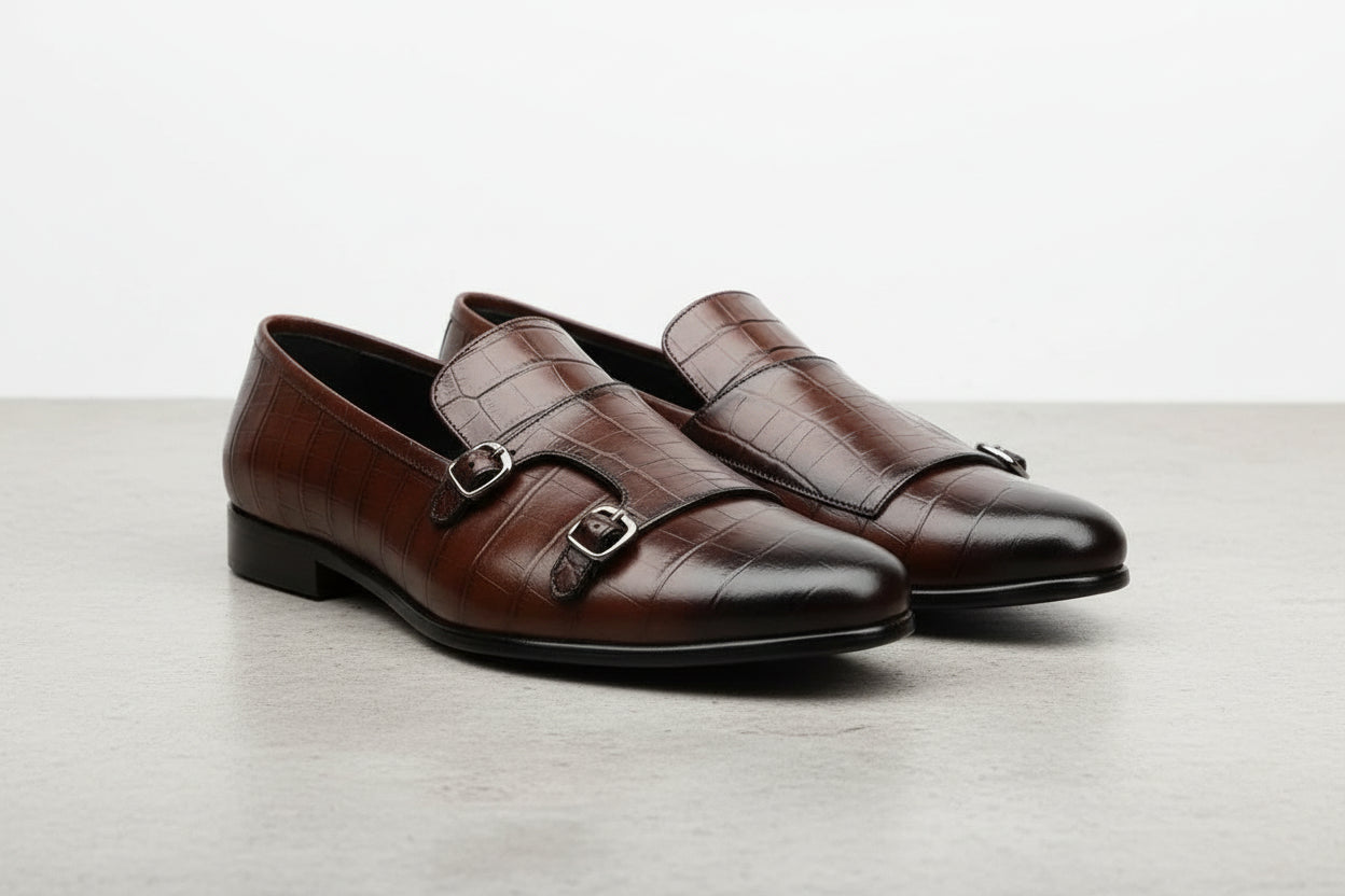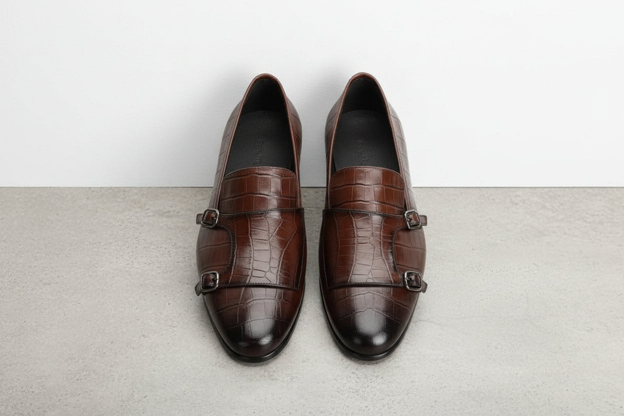 Handcrafted Double Buckle Brown Penny Loafer for Men