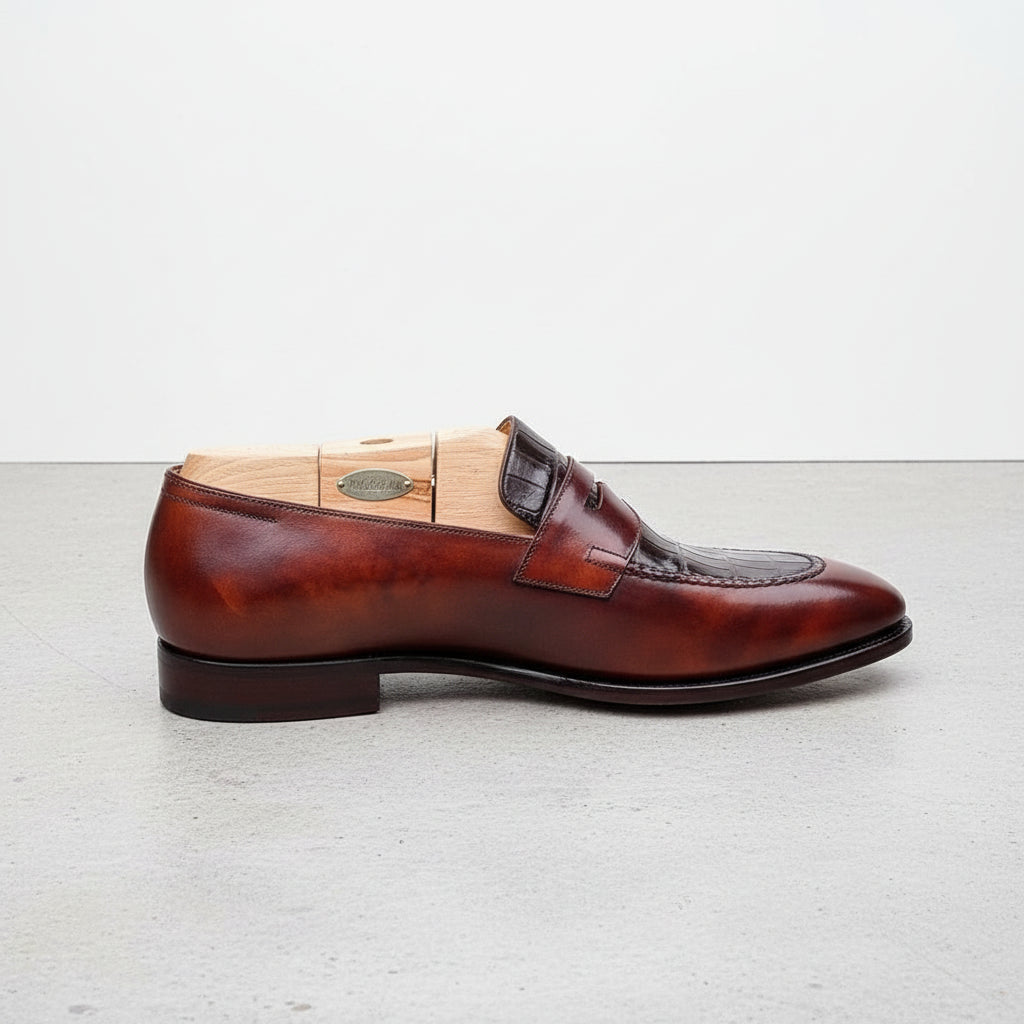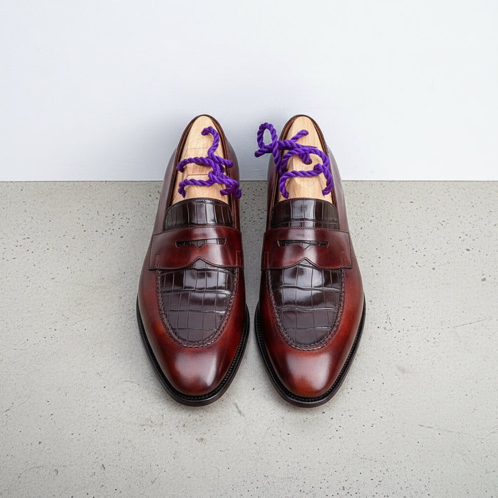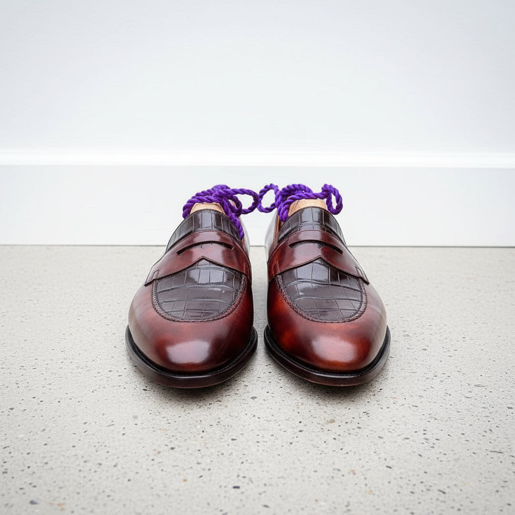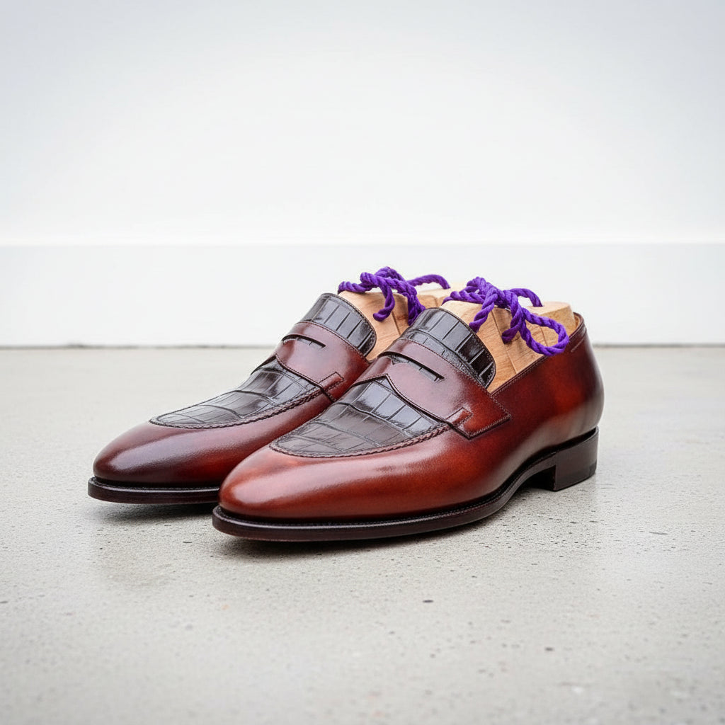 Handmade Men Brown Leather Dress Shoes, Leather Crocodile Texture Moccasins