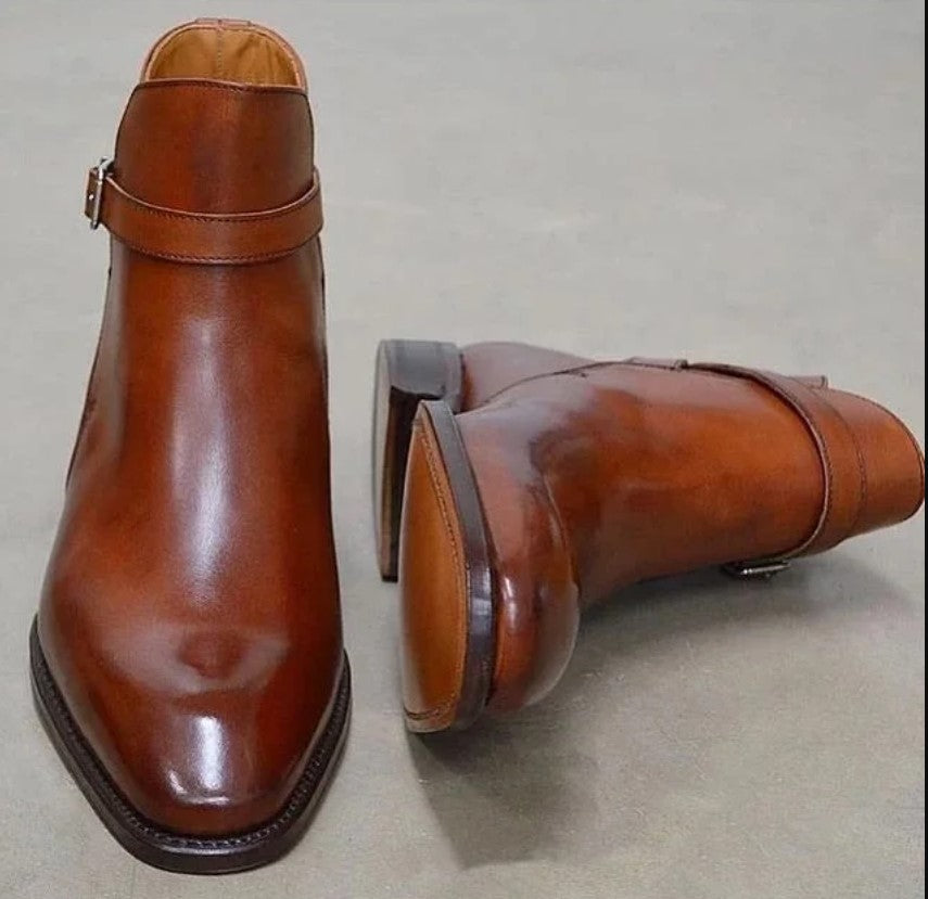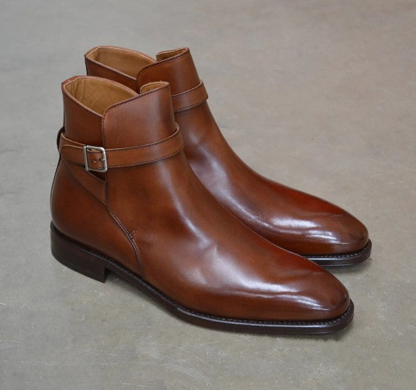 Handcrafted Men's Brown Leather Jodhpur Boots