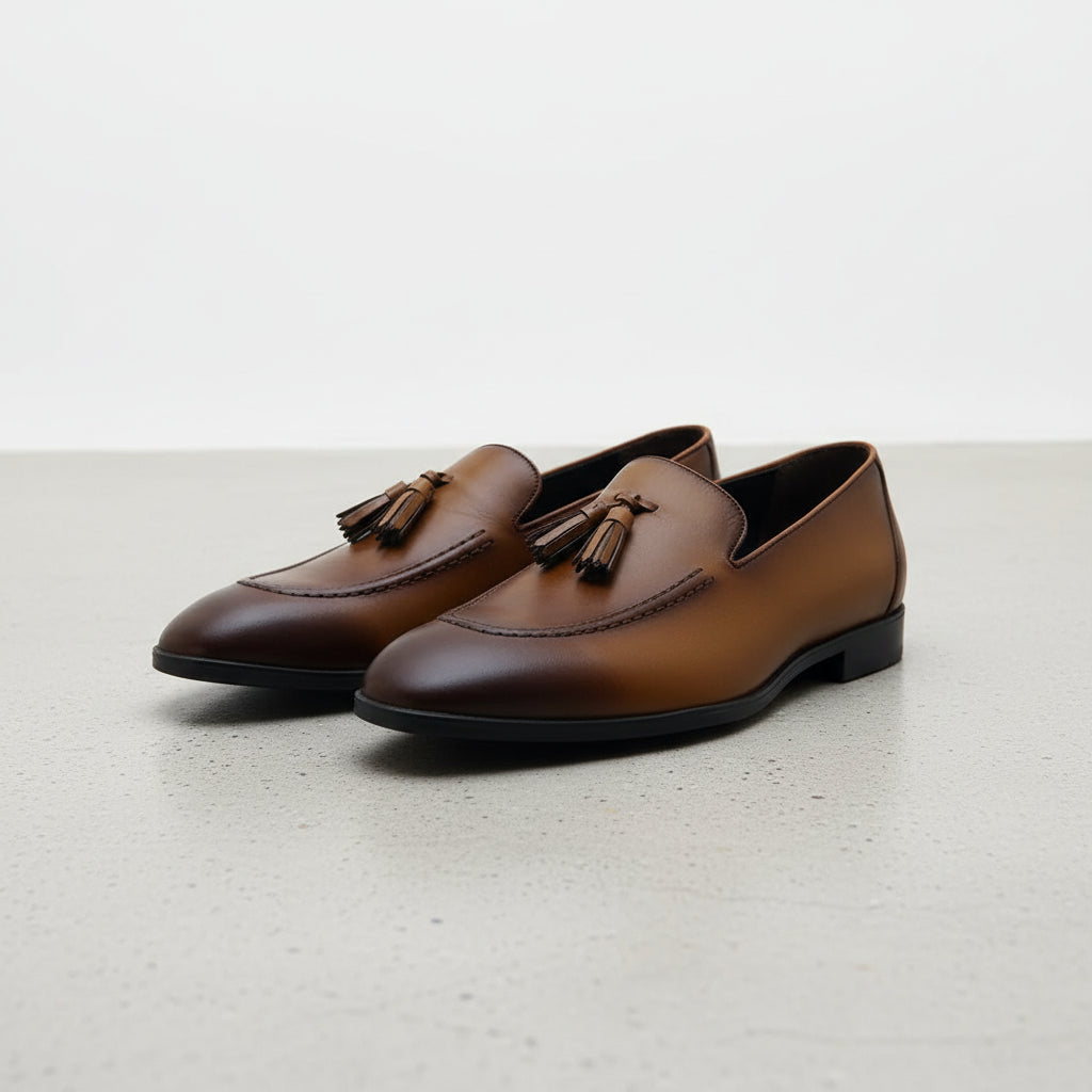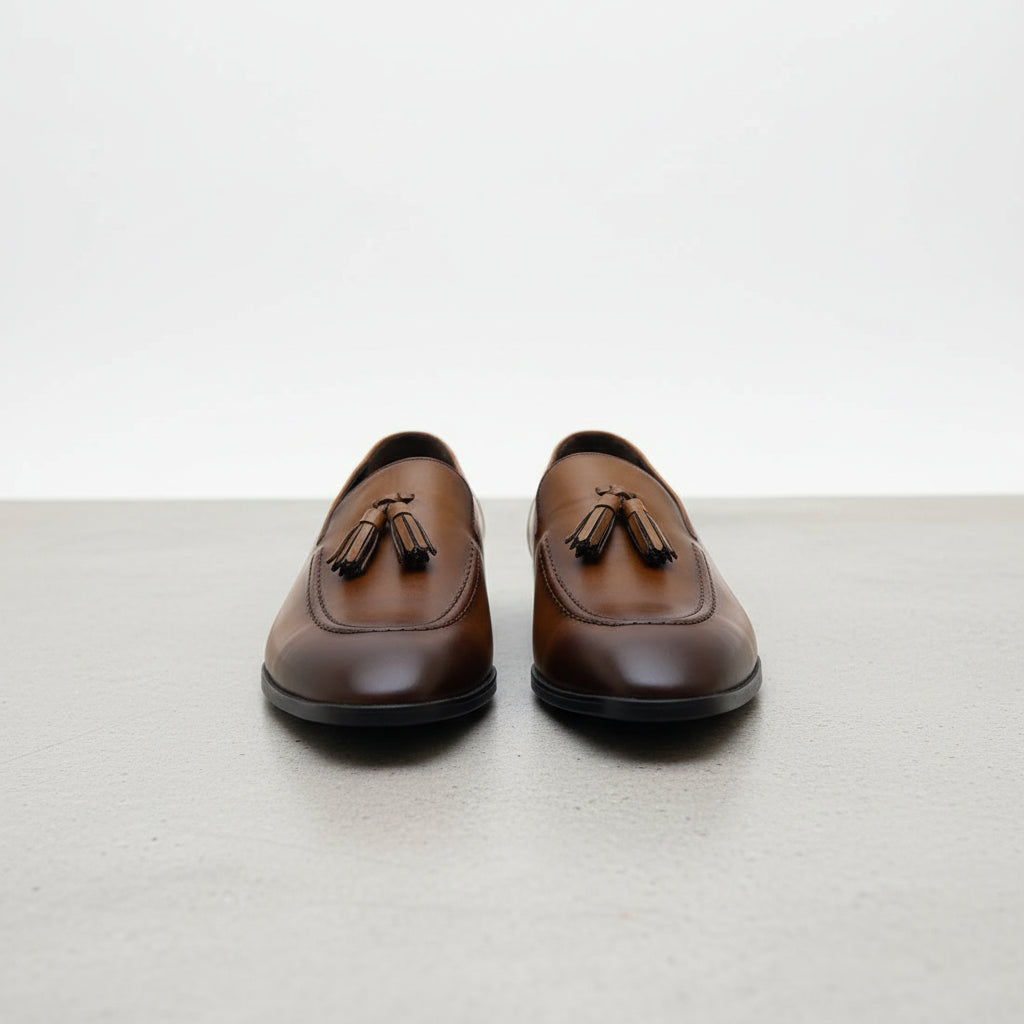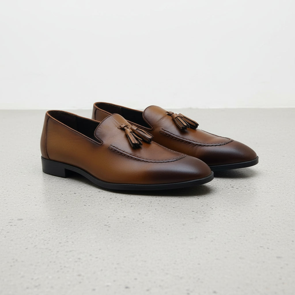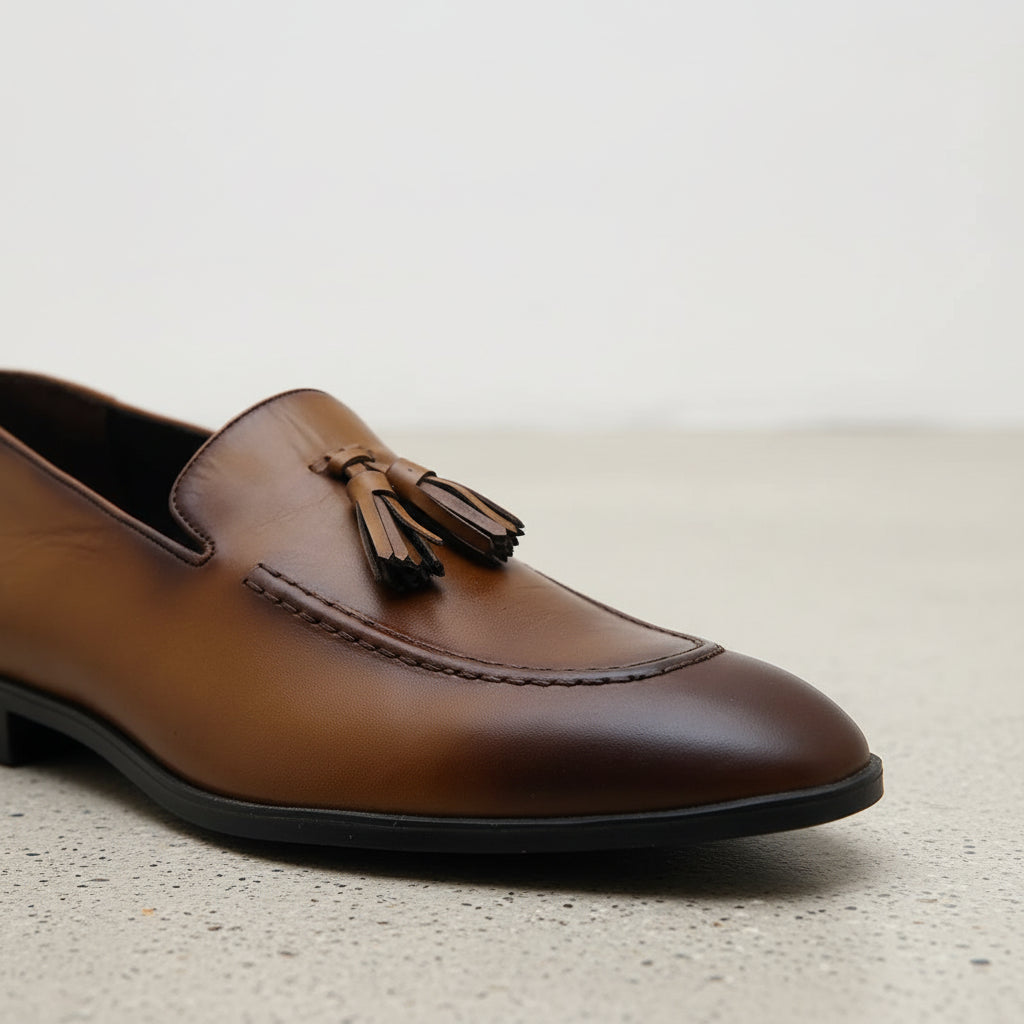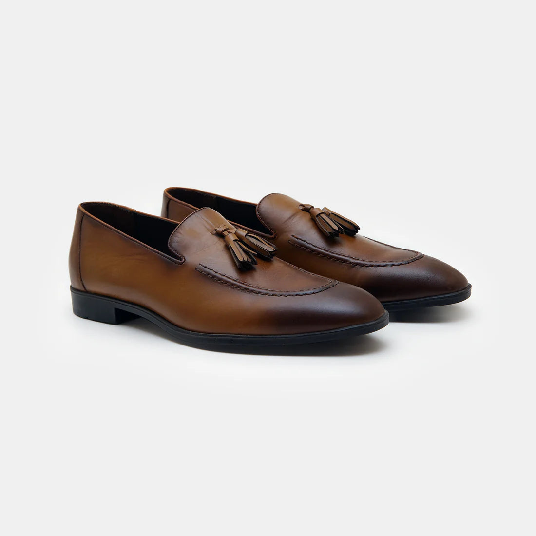 Handmade Men Brown Leather Tassels Moccasins, Brown Leather Moccasins Shoes