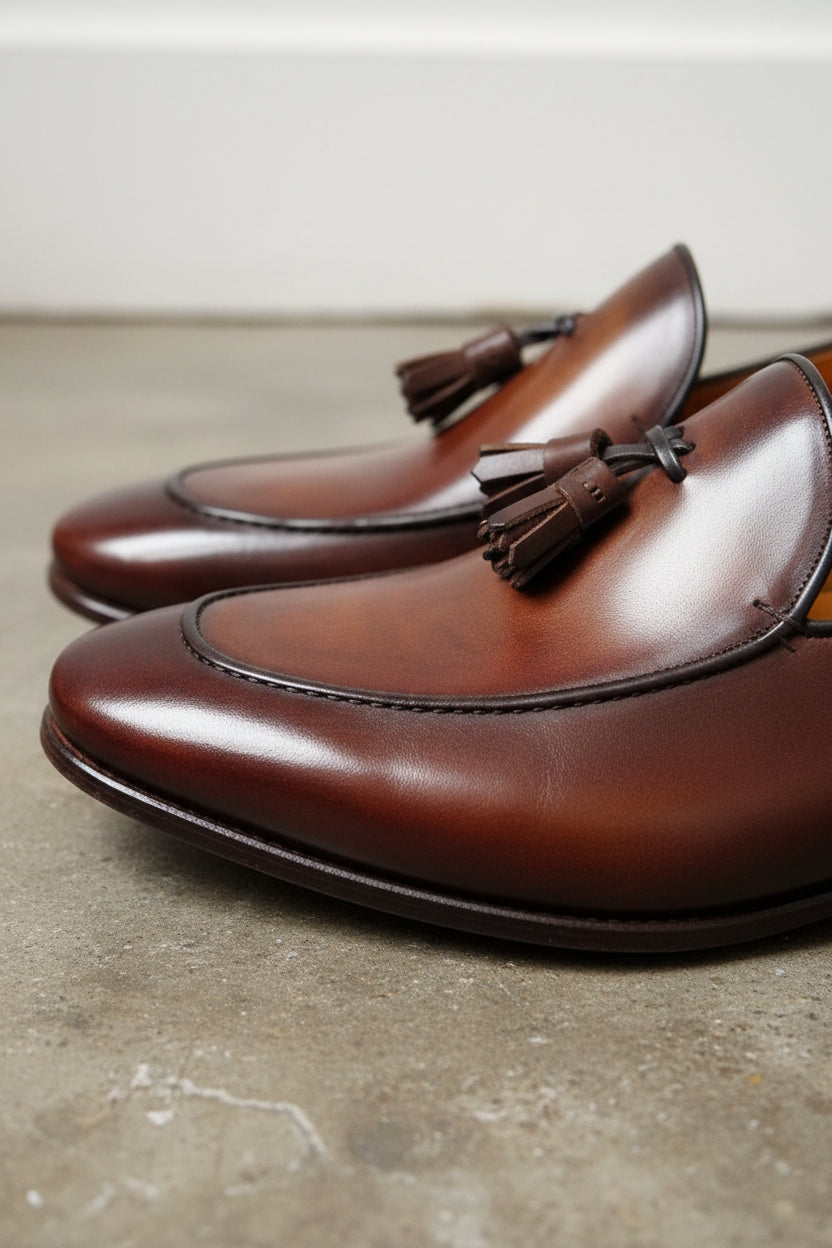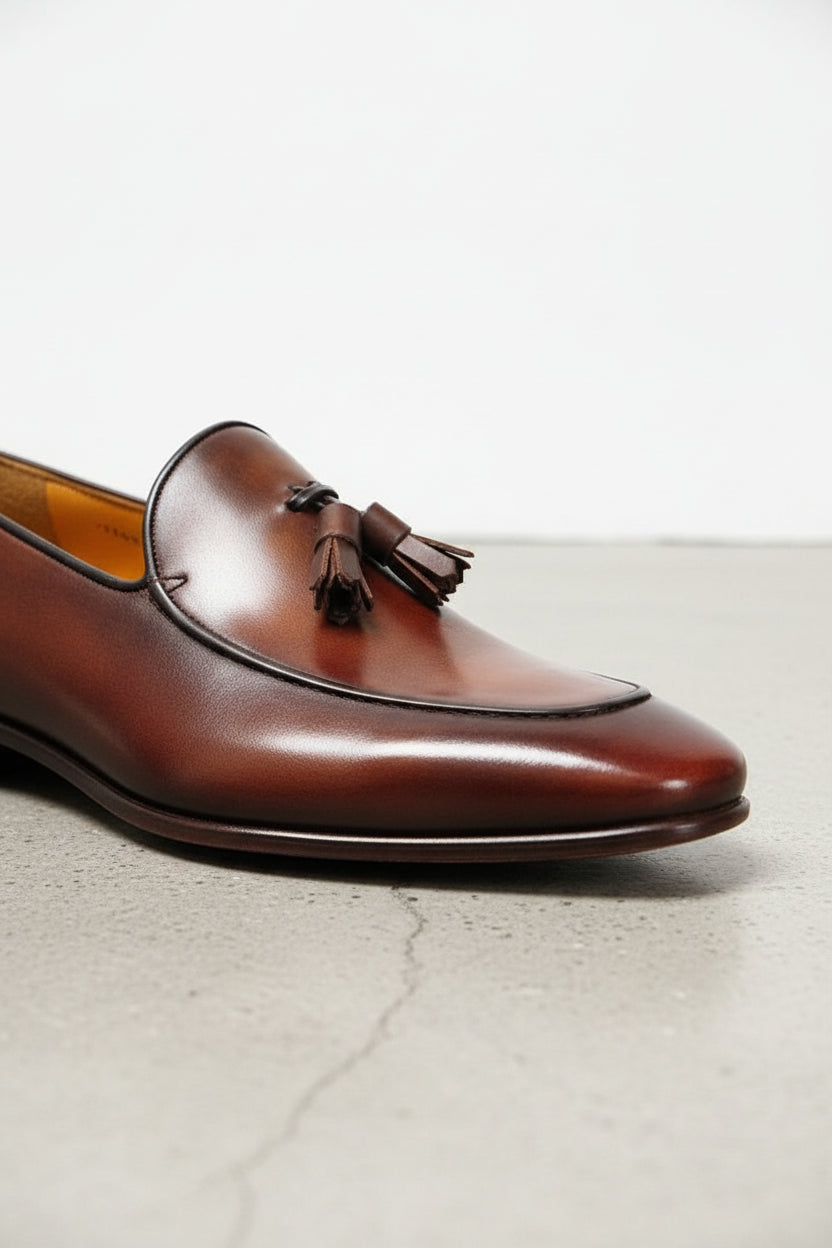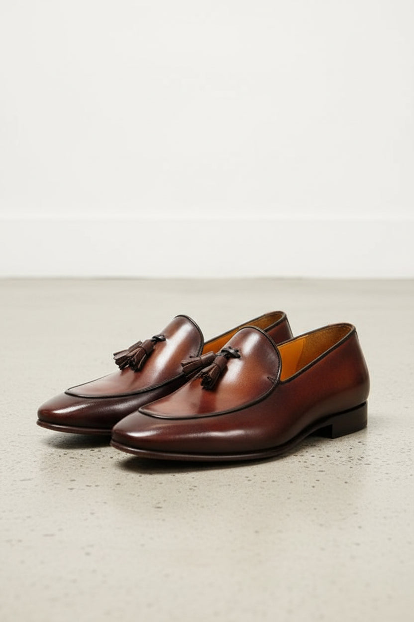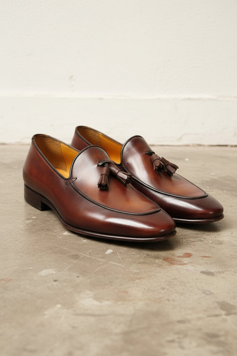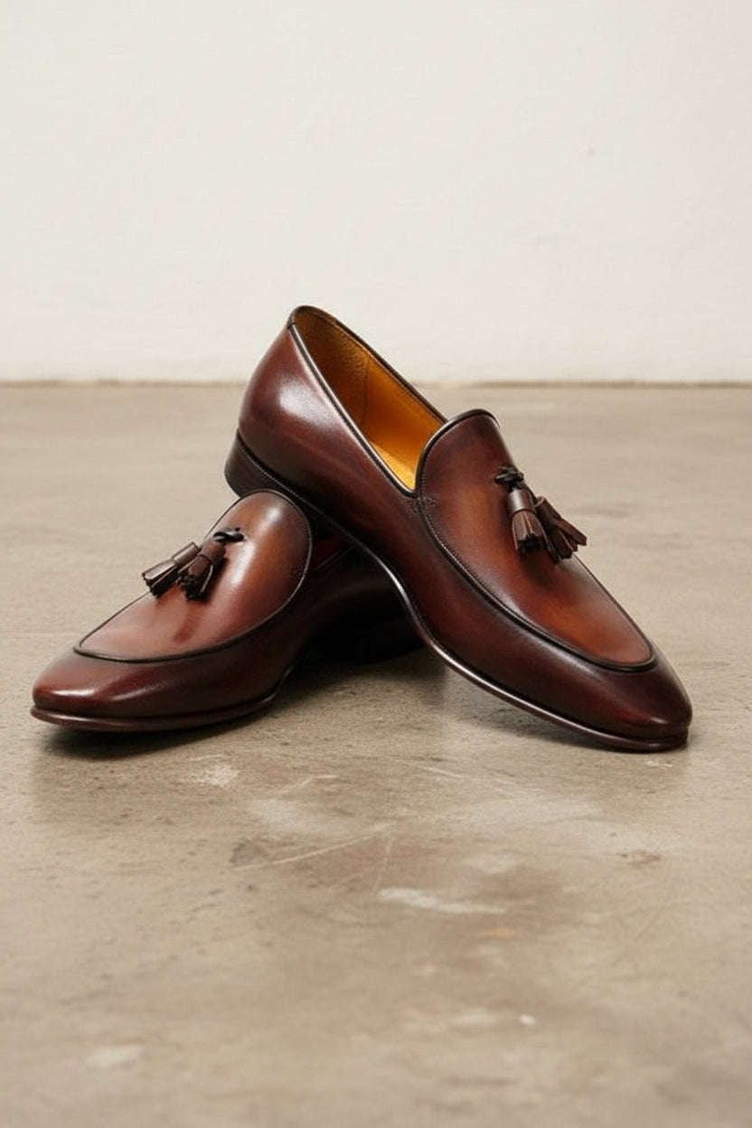 Handmade Men Brown Leather Tassels Shoes Moccasins, Formal Dress Shoes