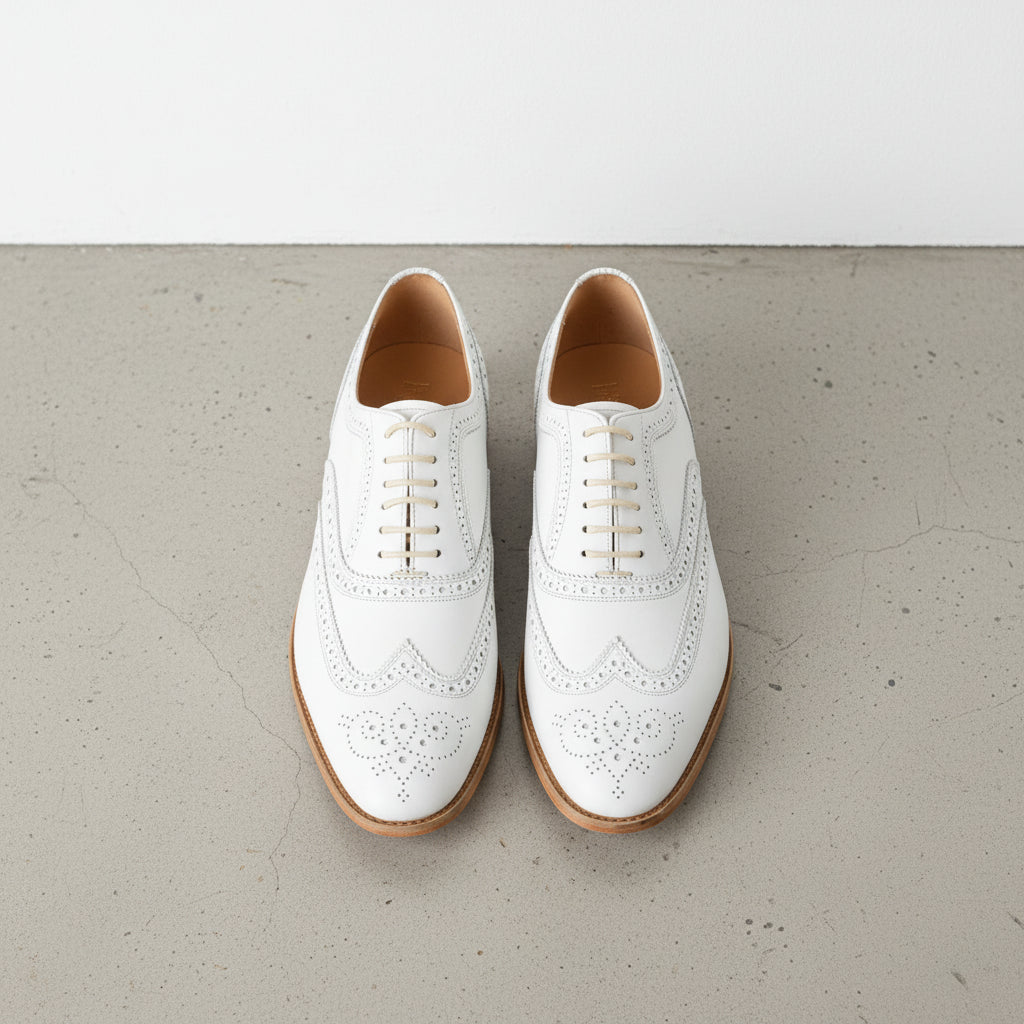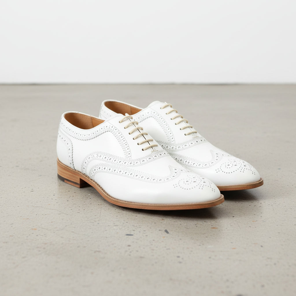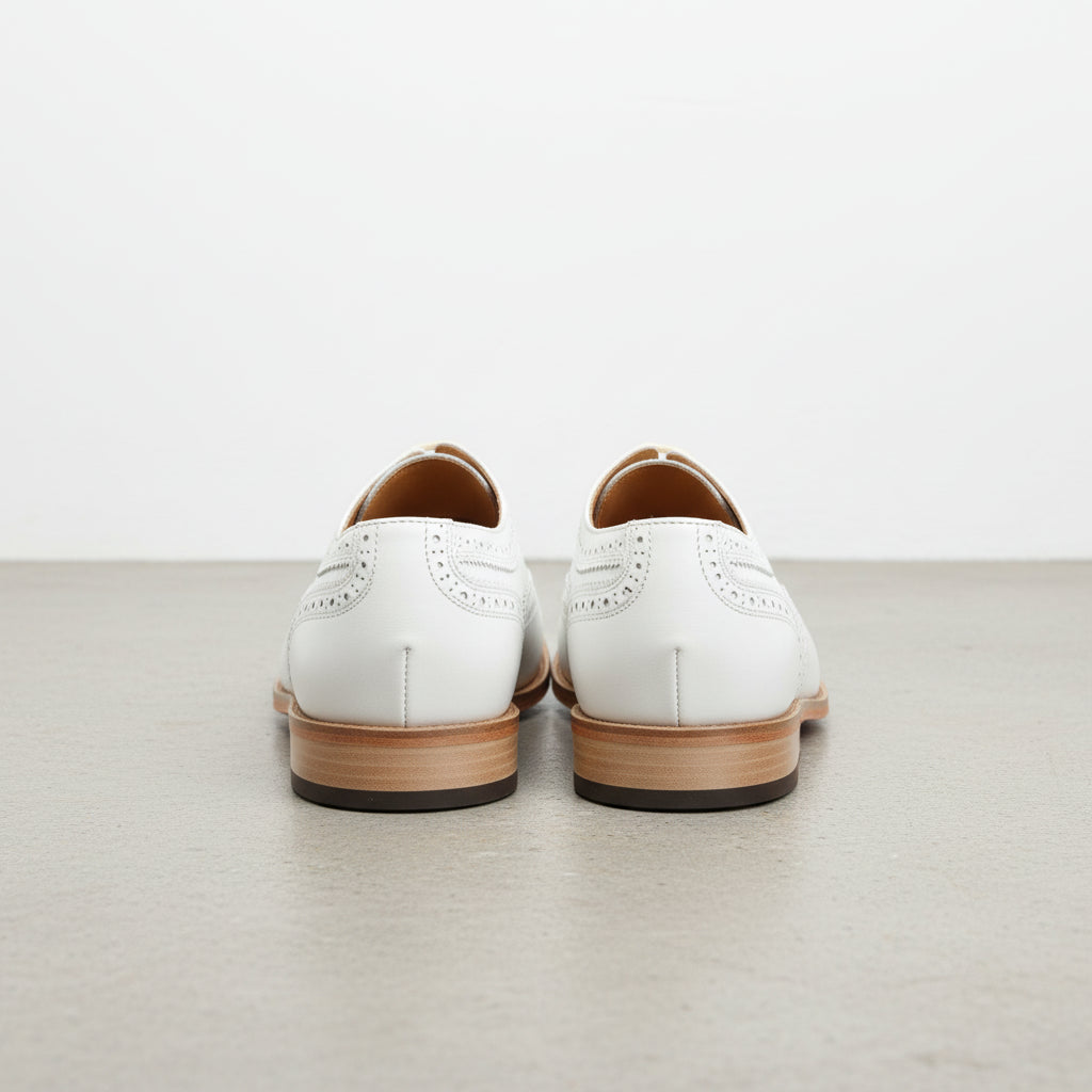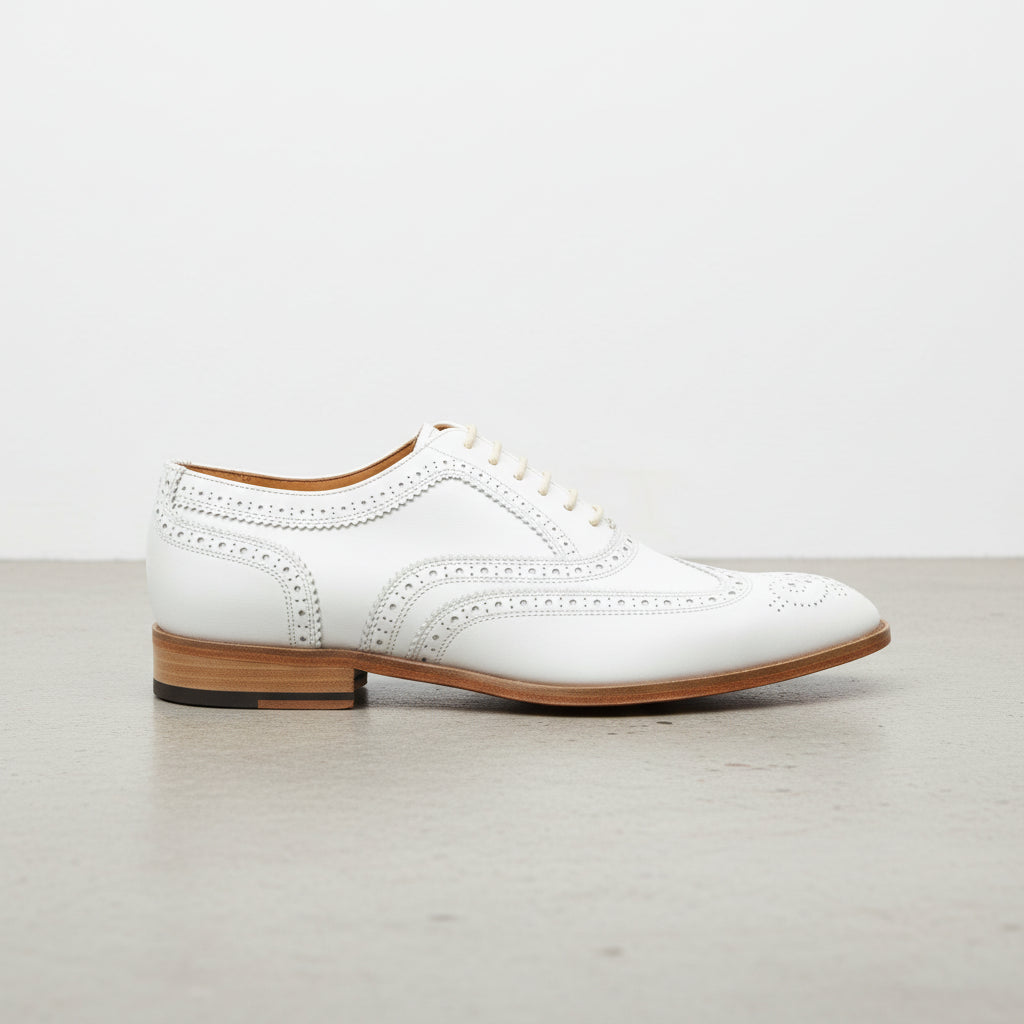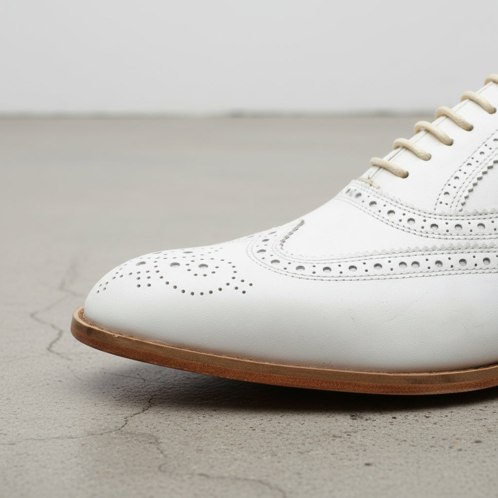 Handmade Men White Wing Tip Brogue Dress Shoes, Men White Party Shoes