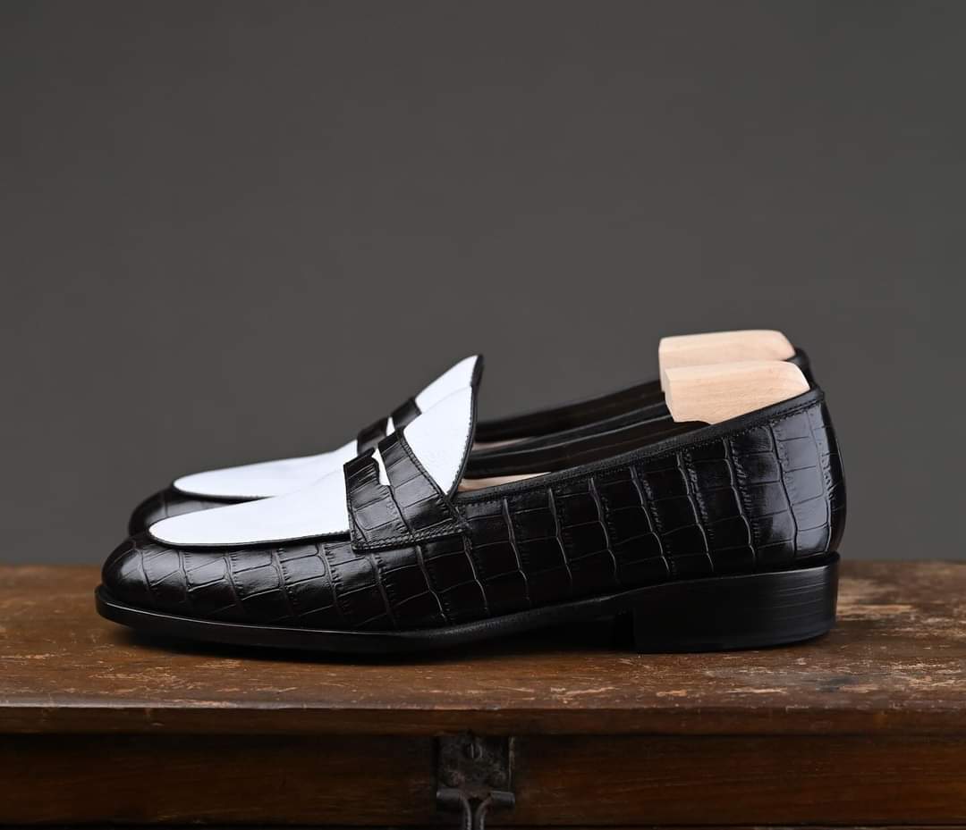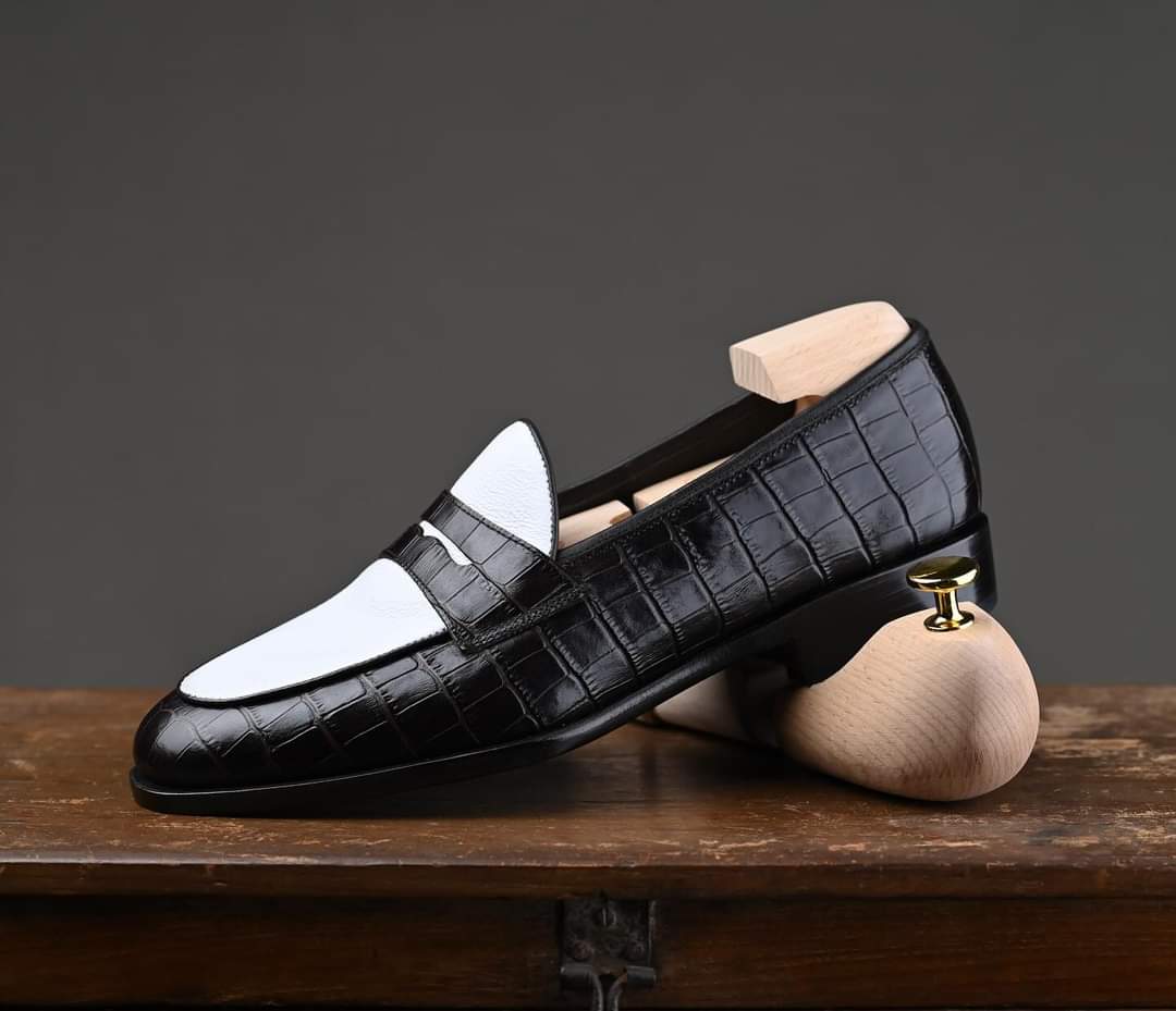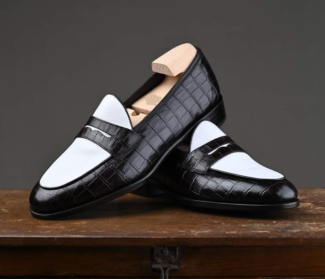 Men's Two-tone Crocodile Leather Moccasins Loafers