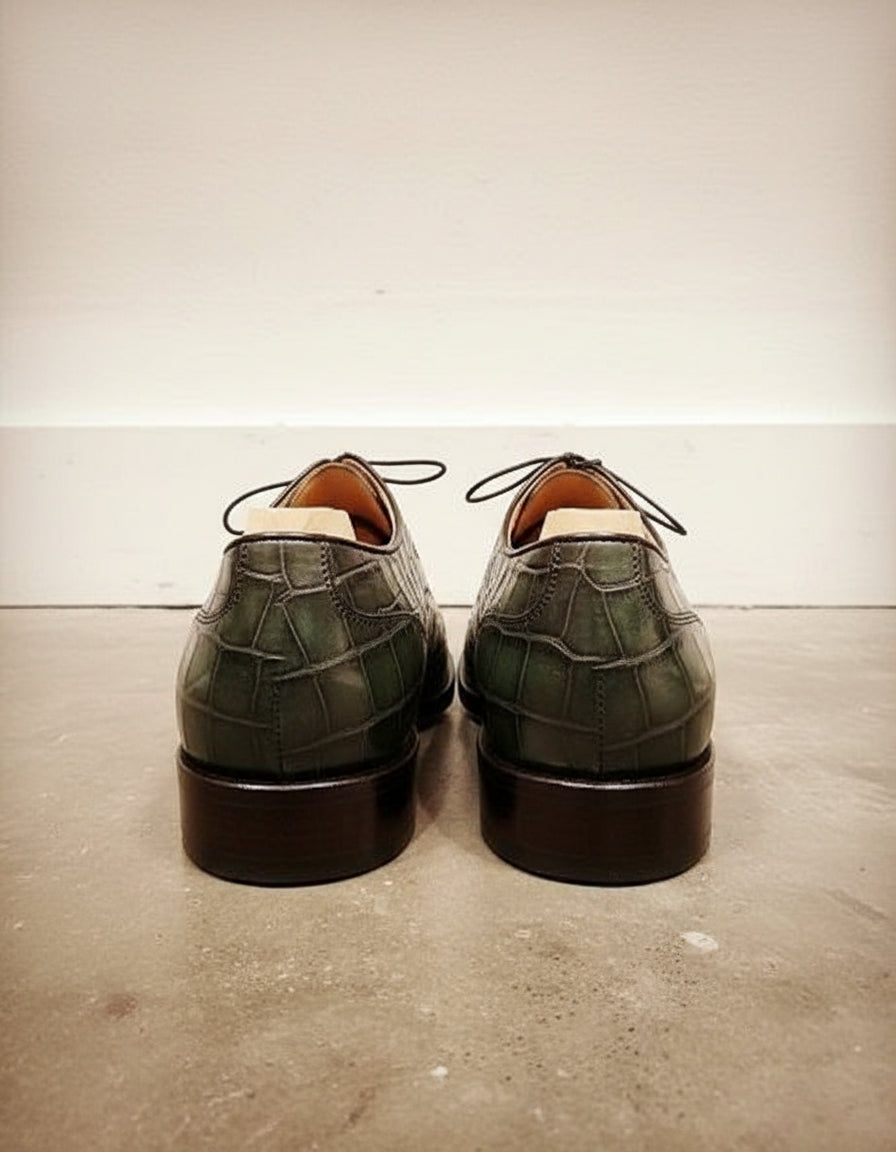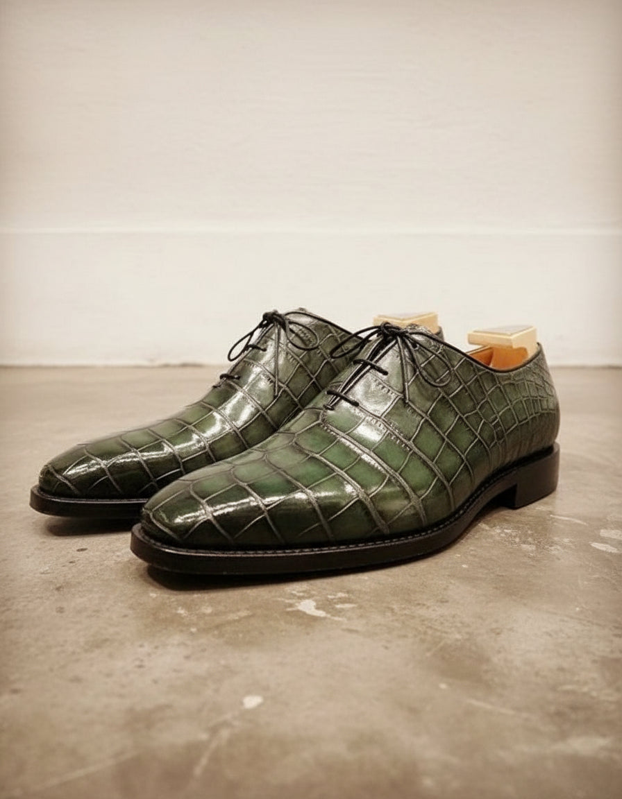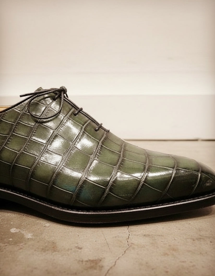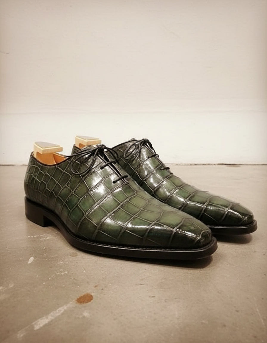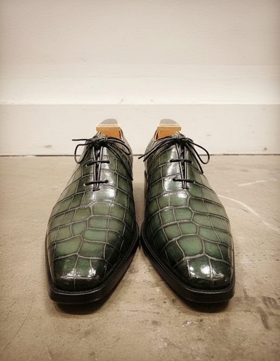 Handcrafted Green Crocodile Leather Men's Dress Shoes