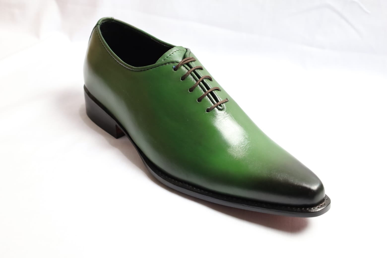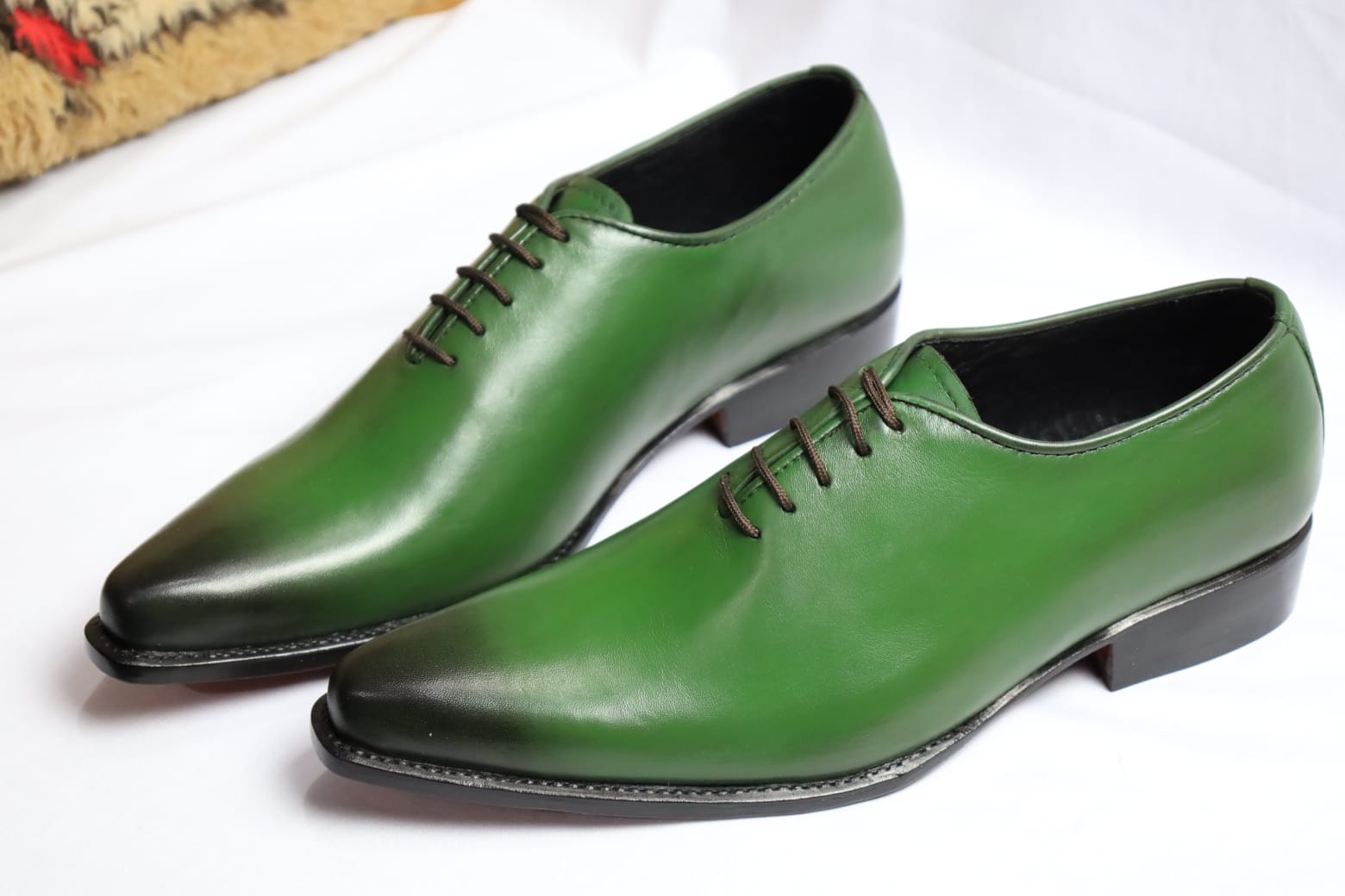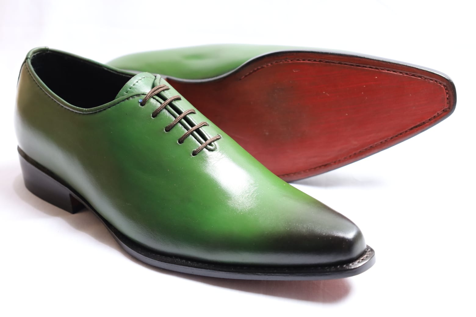 Handcrafted Men's Green Leather Pointed Toe Dress Shoes