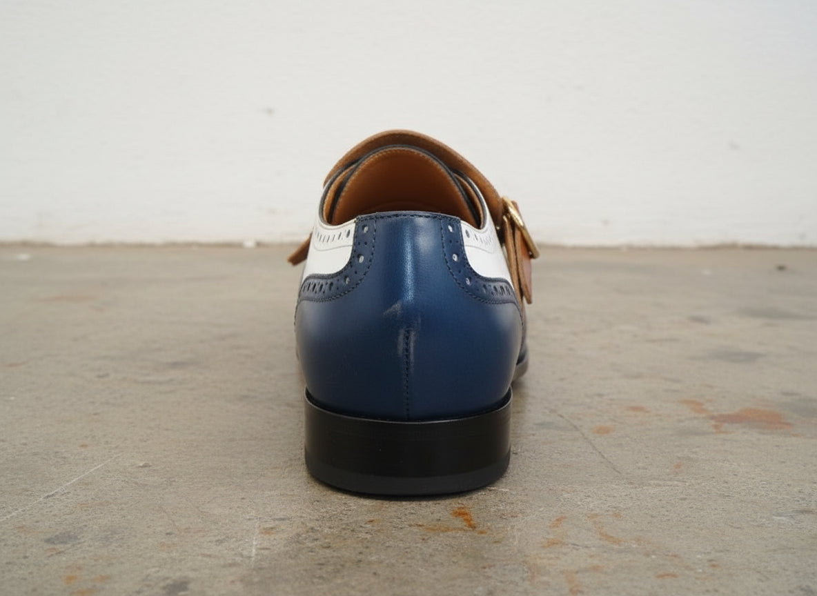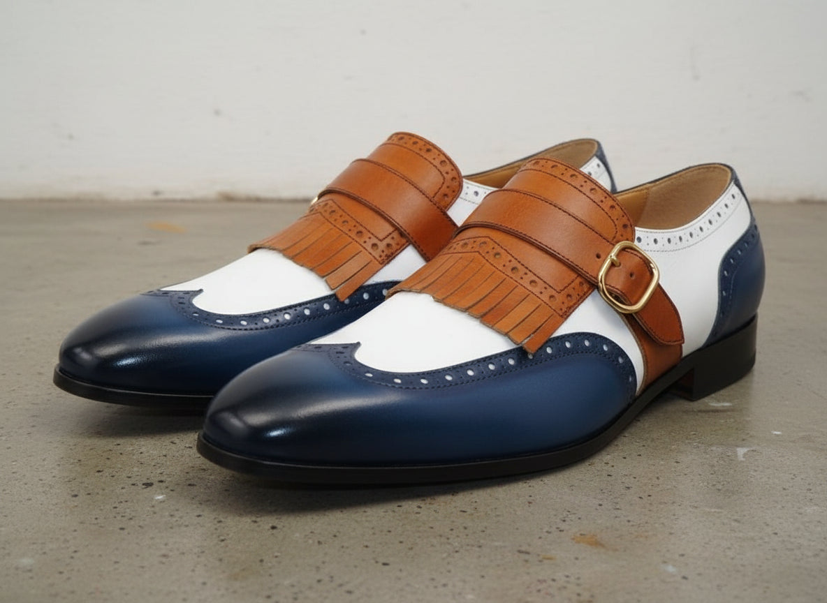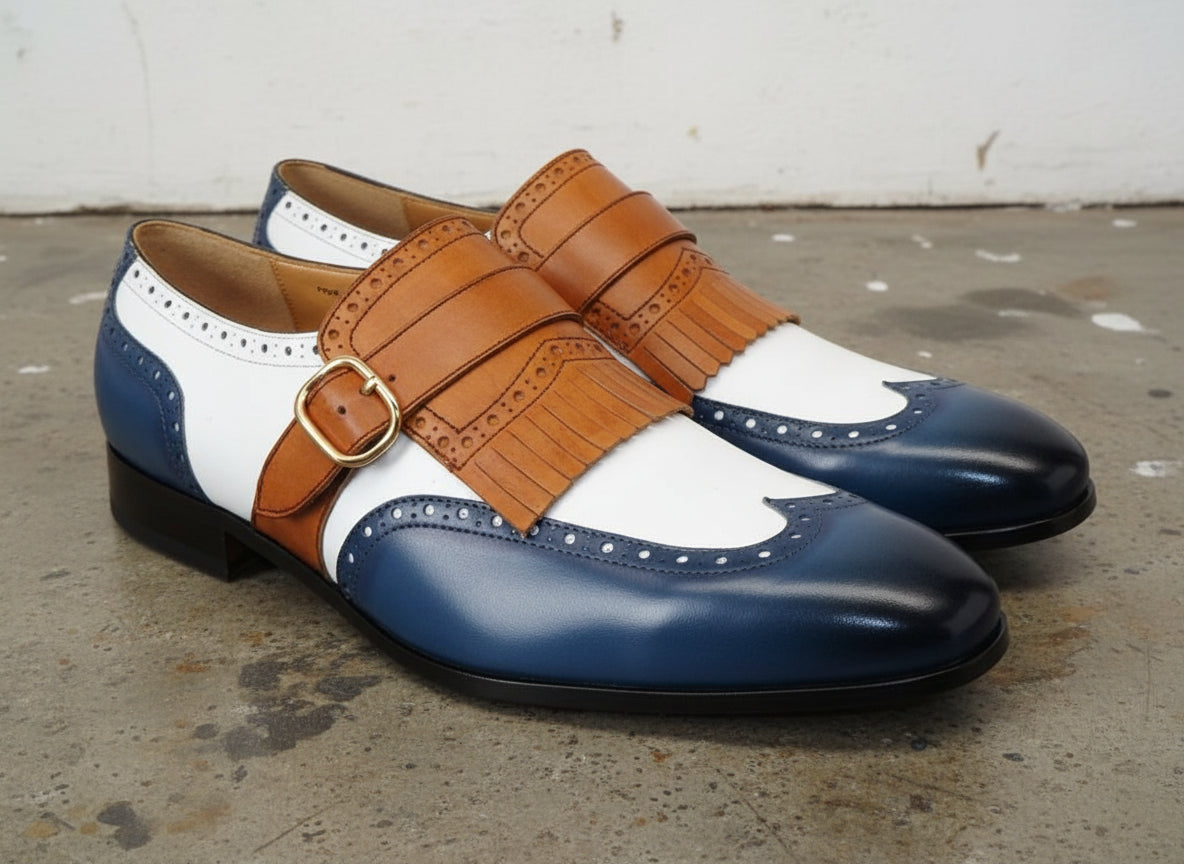 Handmade Men Multi Color Fringes Monk Shoes, Tri Color Formal Shoes