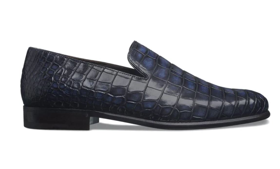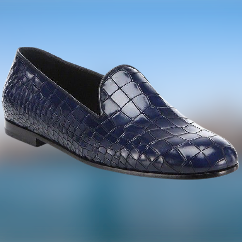 Handmade Mens Blue Alligators Shoes, Men Blue Crocodile Penny Loafer