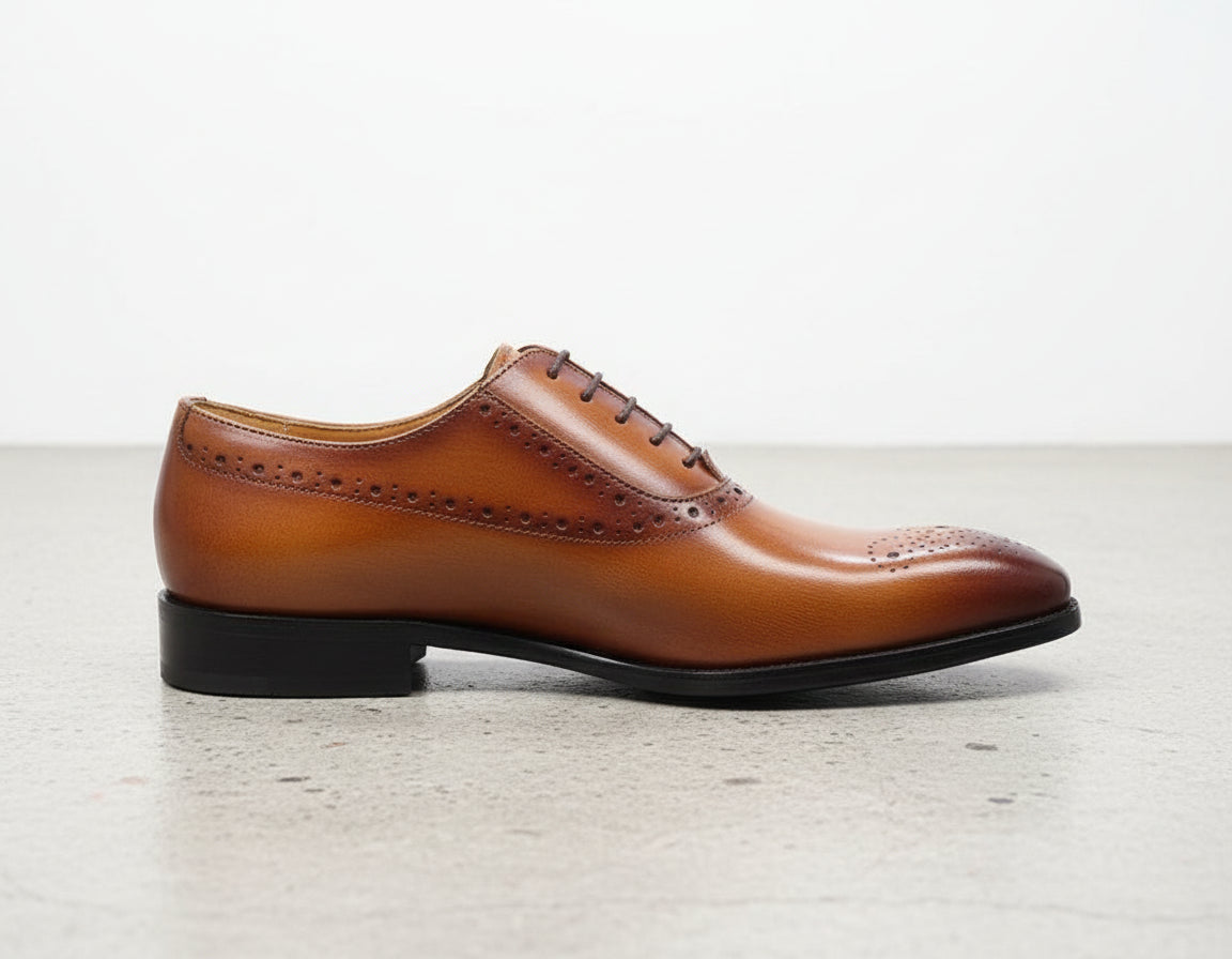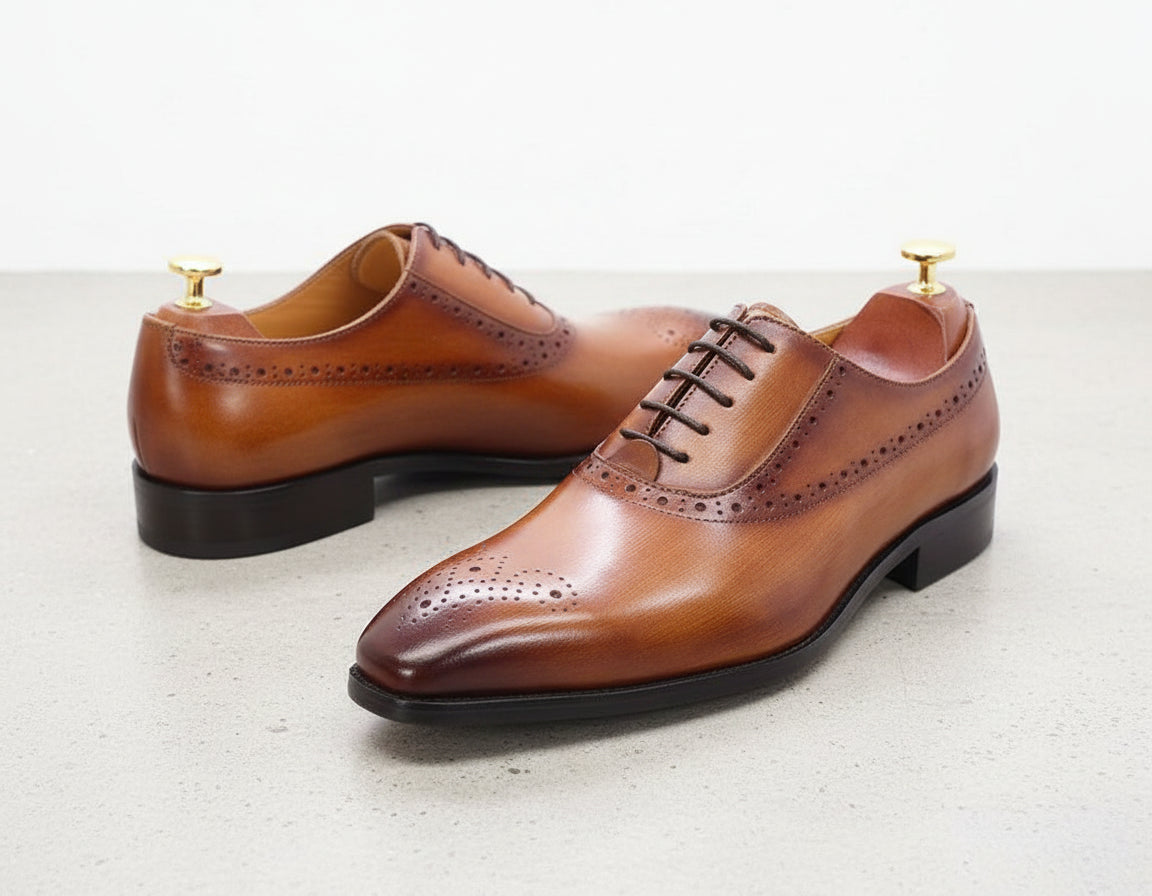 Handmade Men Tan Brown Dress Shoes, Men Brown Leather Brogue Formal Shoes