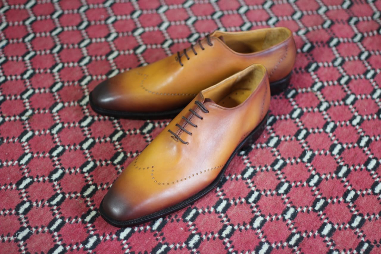 Handmade Men Tan Brown Dress Shoes, Men Brown Leather Brogue Oxfords Shoes