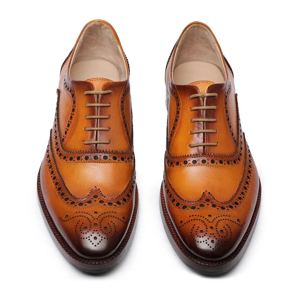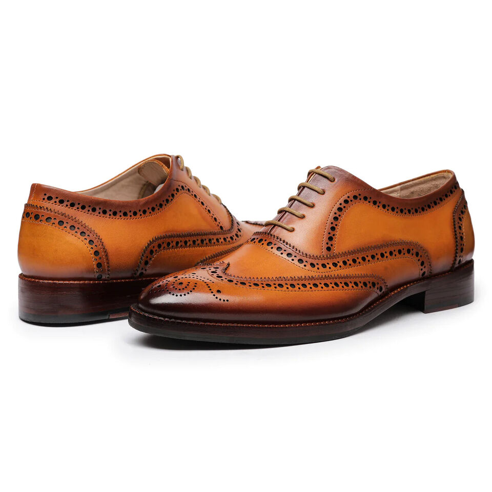 Men's Wingtip Dress Shoes, Handmade Tan Leather Oxford