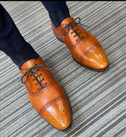 Men's Tan Leather Brogue Dress Shoes - Handmade Elegance