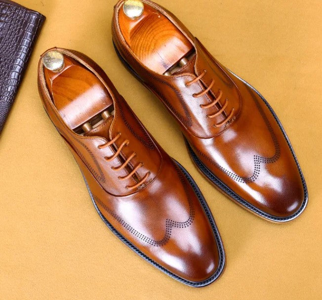 Handmade Men Tan Oxfors Leather Shoes, Men Wingtip Dress Shoes, Mens Shoe