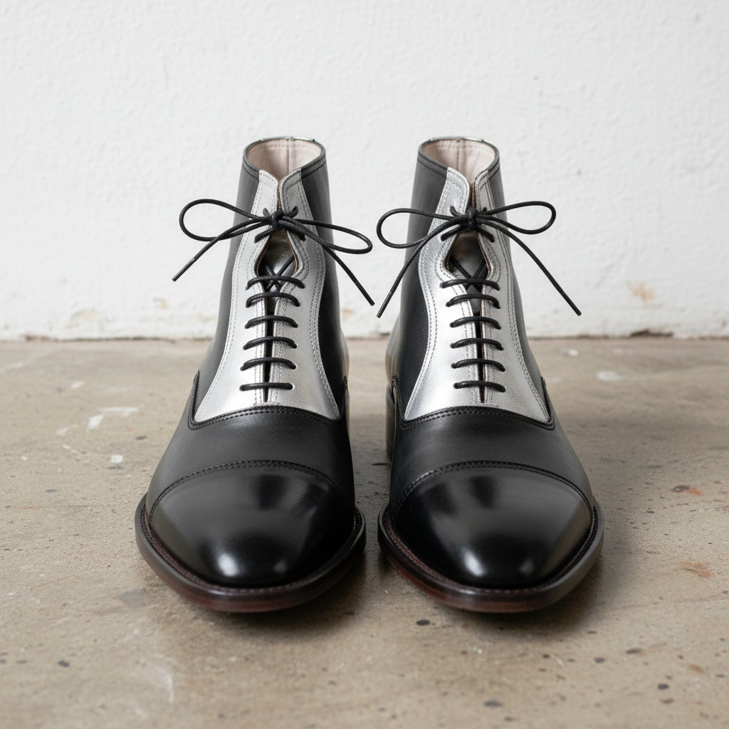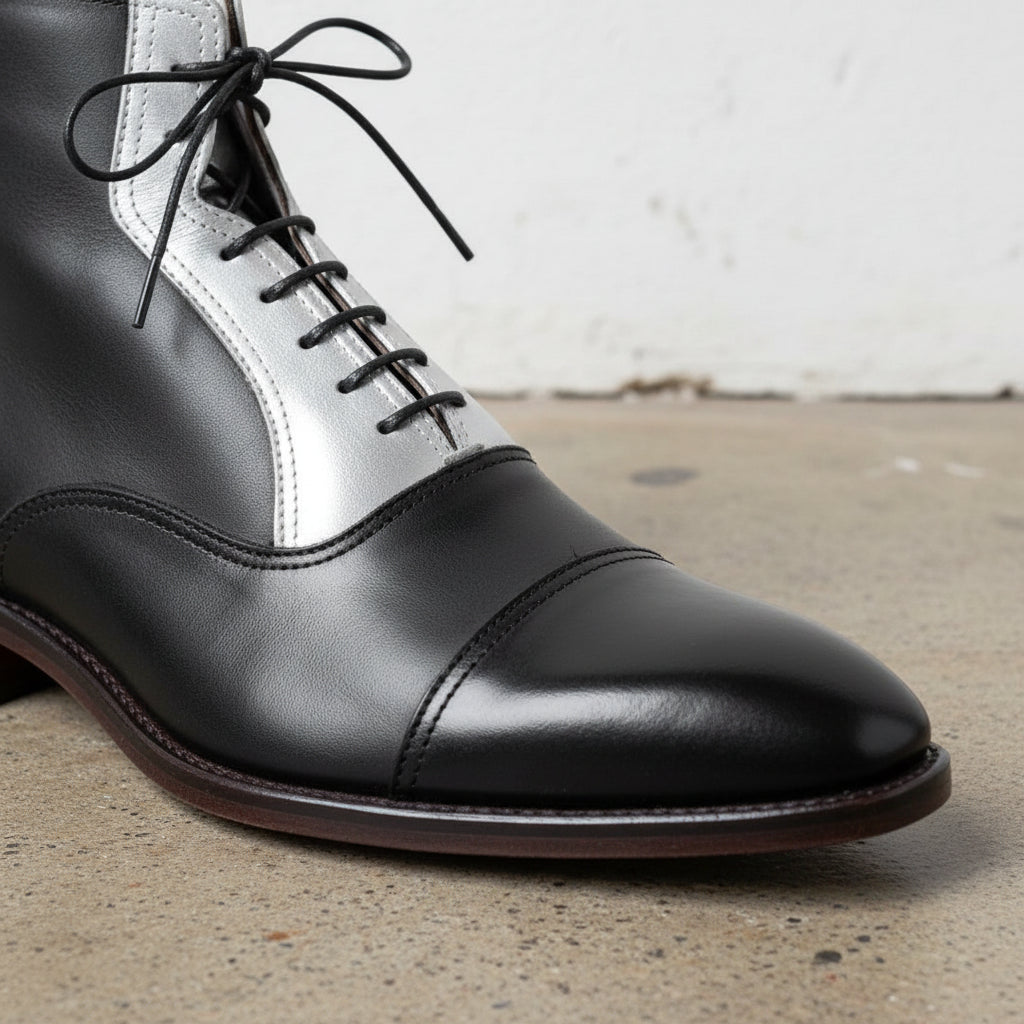 Men's Handmade Two Tone Cap Toe Lace Up Ankle Boots