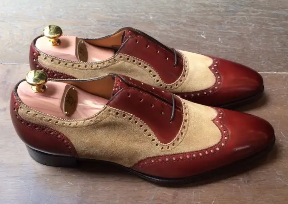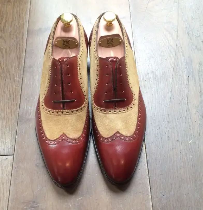 Handmade Men Brown Leather Formal Shoes, Wing Tip Two Tone Dress Shoes