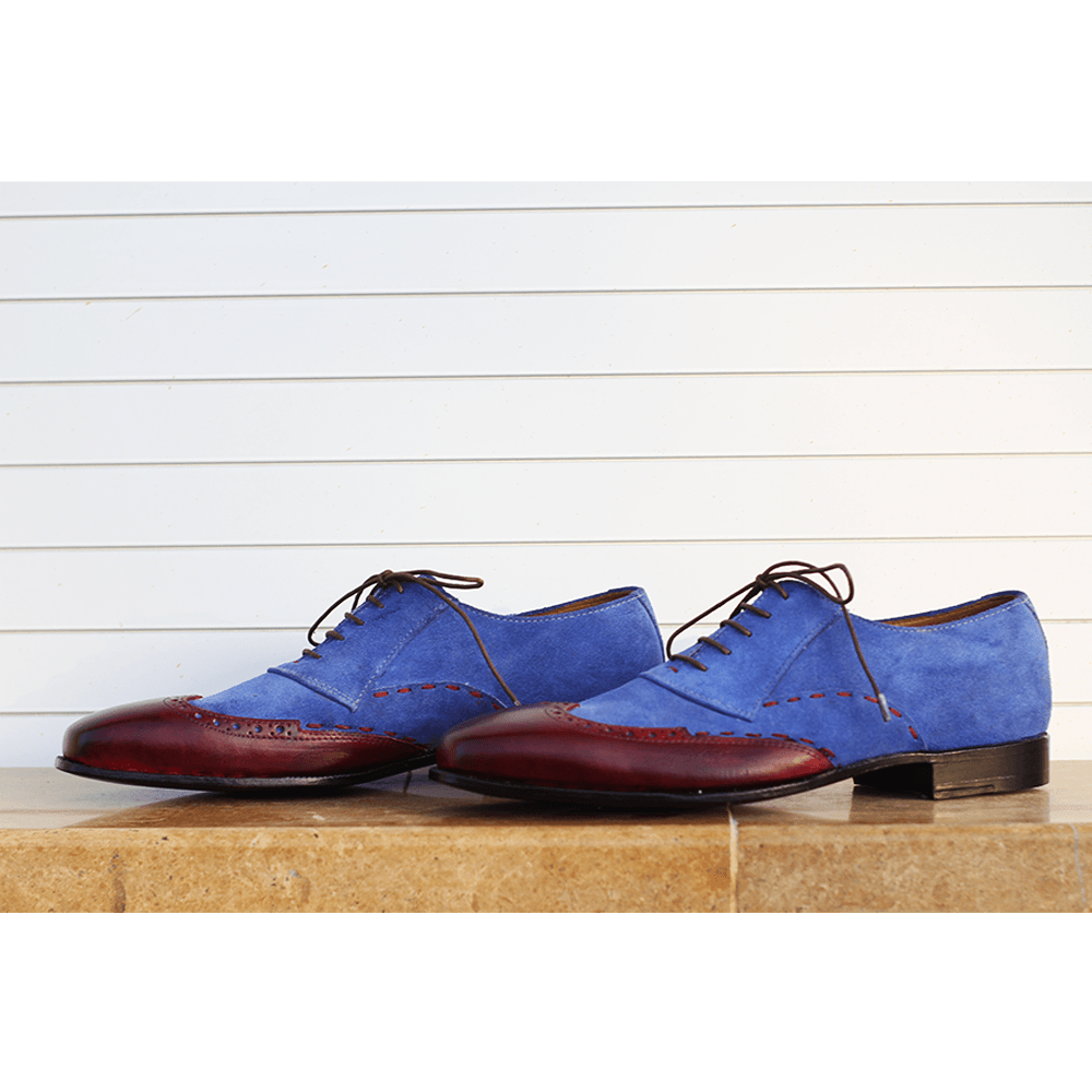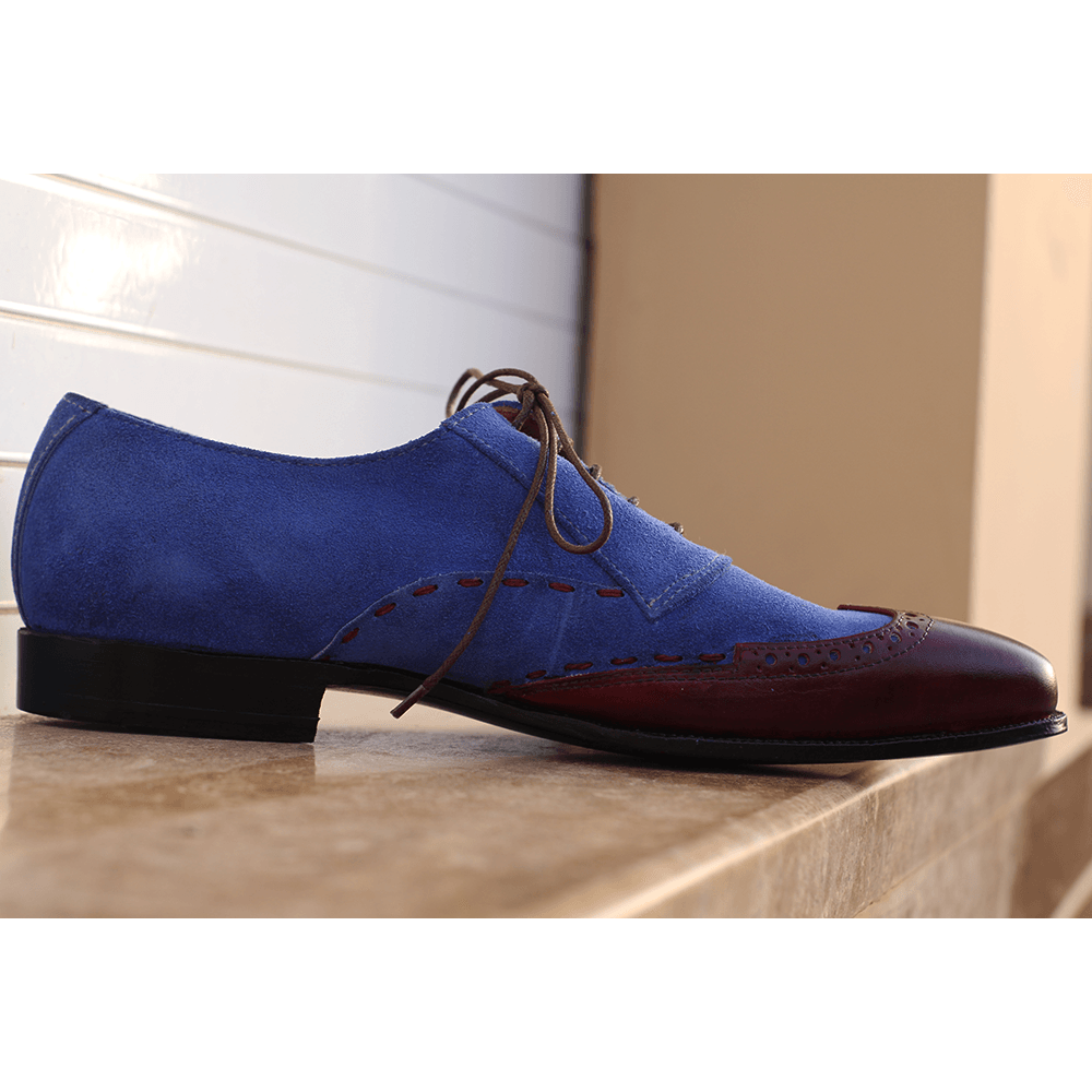 Handmade Men Two Tone Wing Tip Shoes, Blue and Brown Formal Dress Shoes