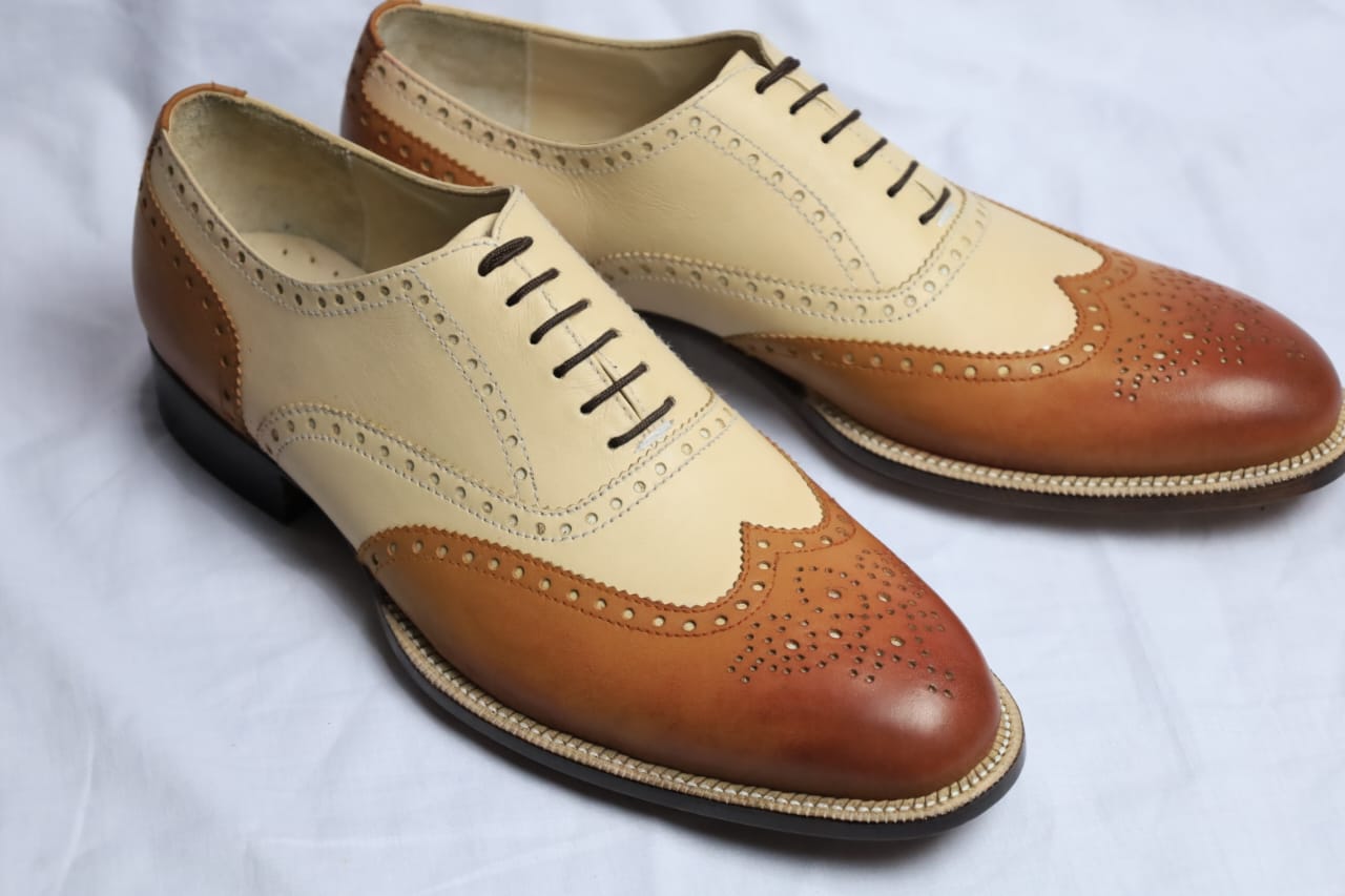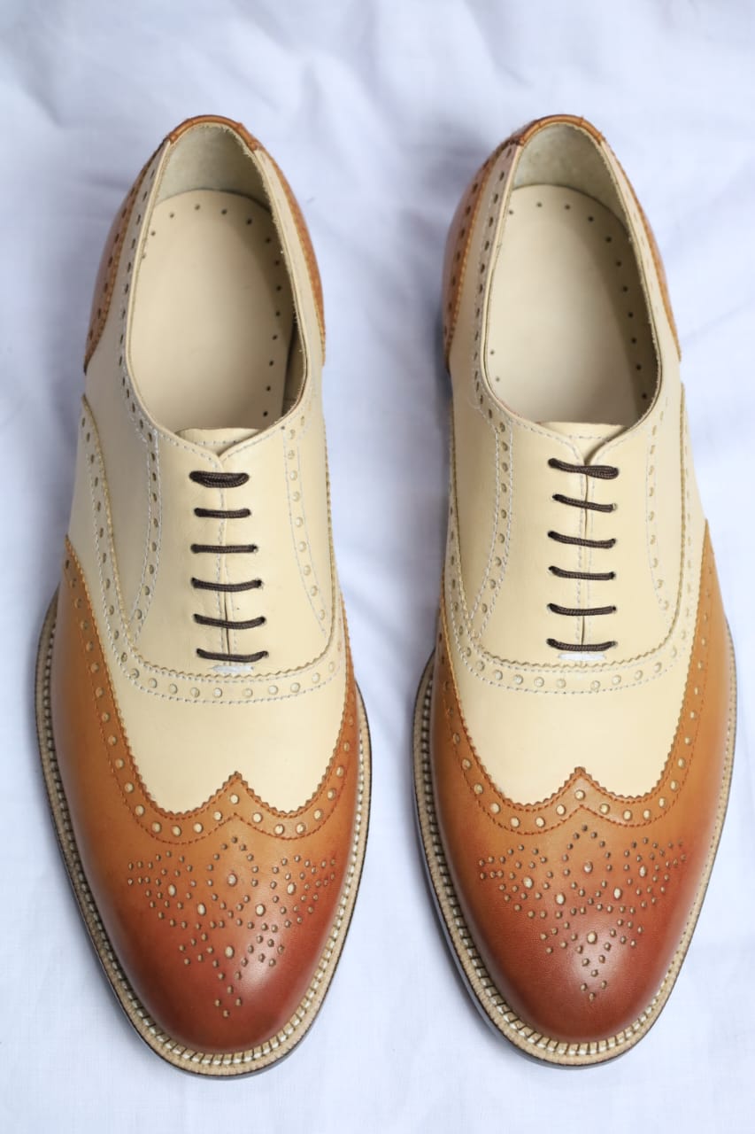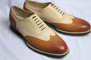 Handcrafted Men's Two-tone Wingtip Brogue Shoes