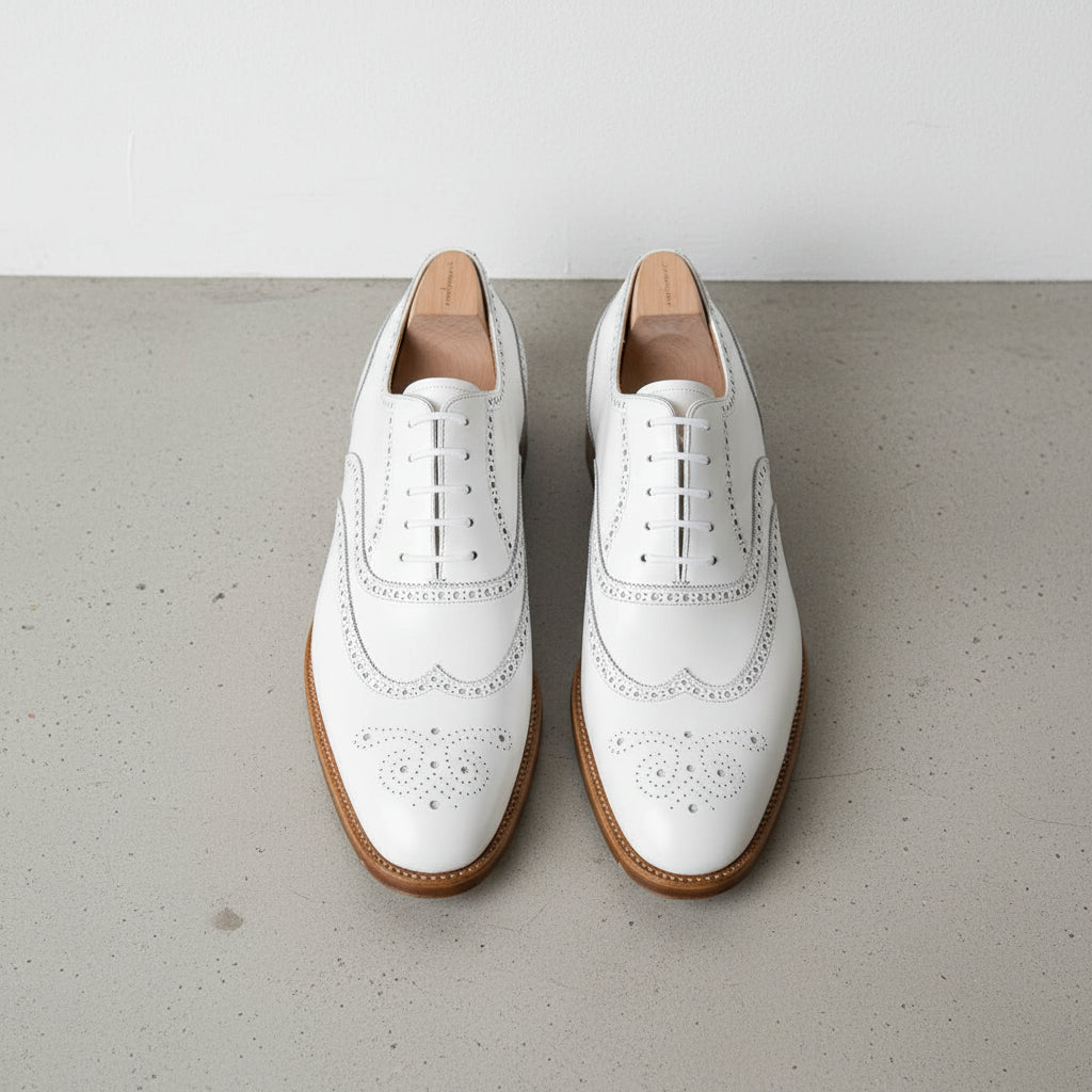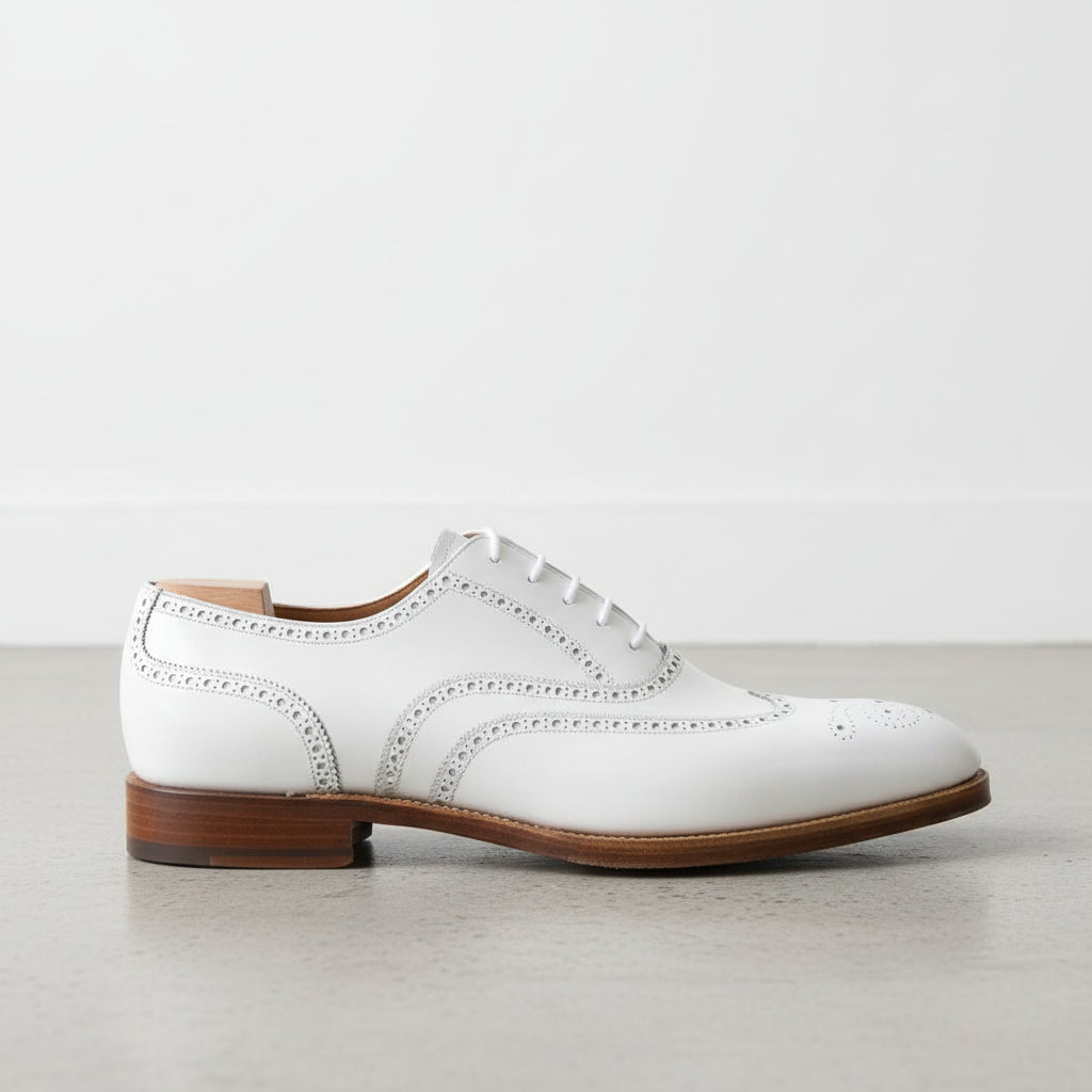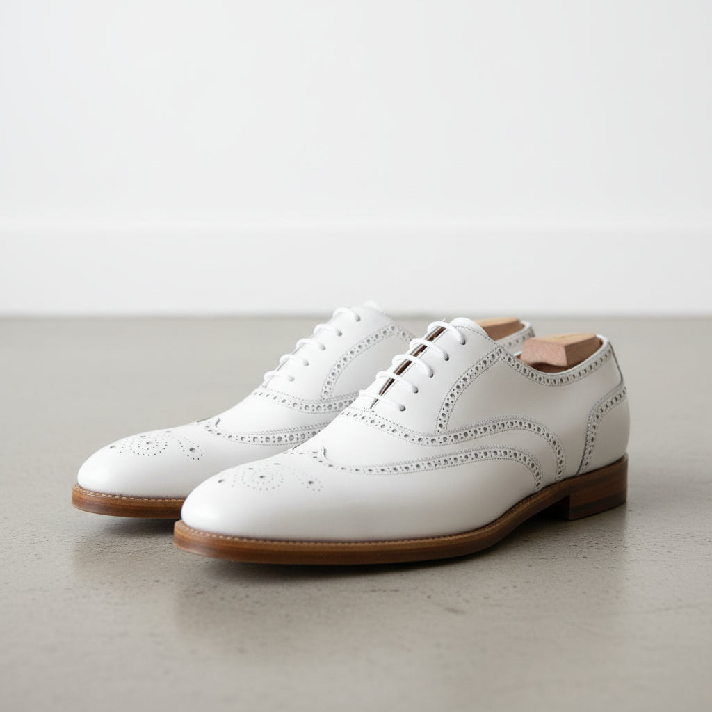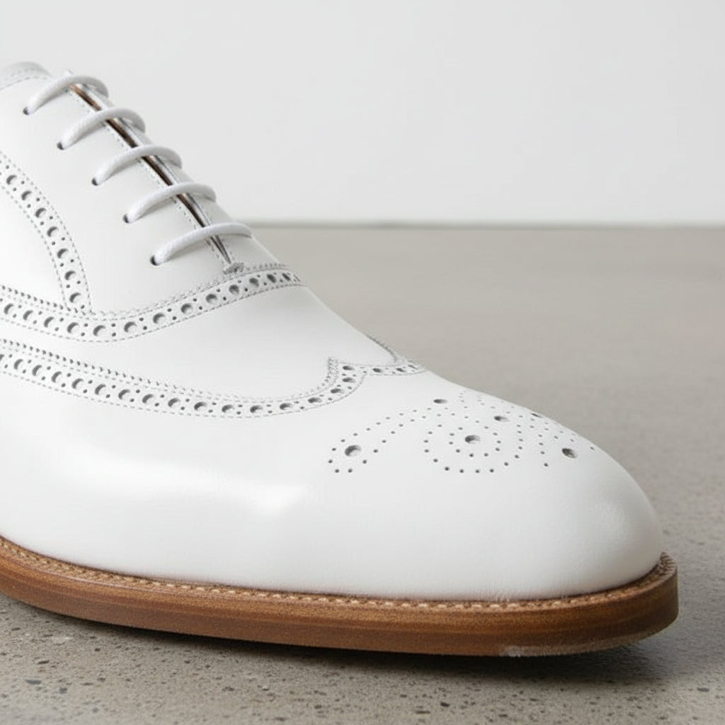 Handmade Men White Wingtip Brogue Shoes, Brogue Formal Shoes Shoes