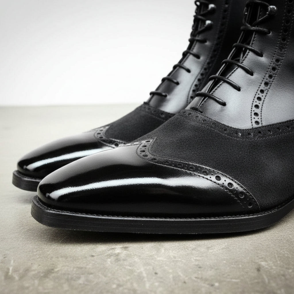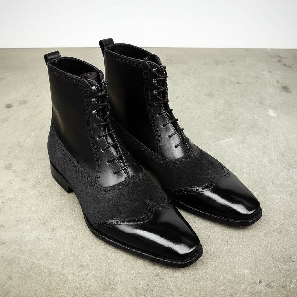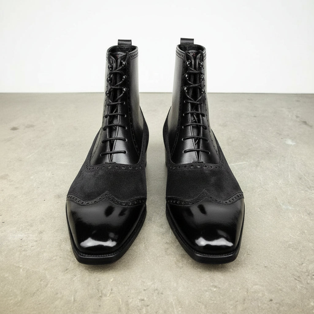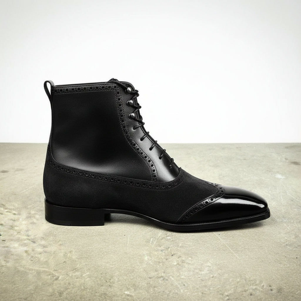 Handmade Men Wingtip Boots, Suede and Leather Ankle Boots, Boots