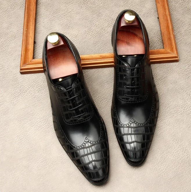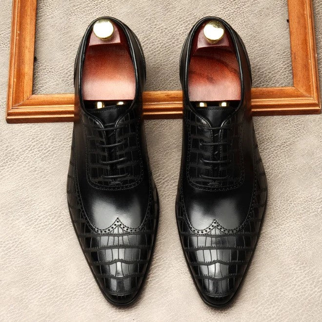Men's Black Crocodile Patterned Oxford Dress Shoes